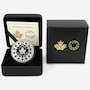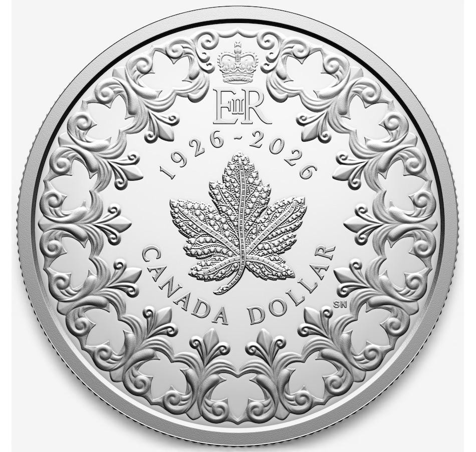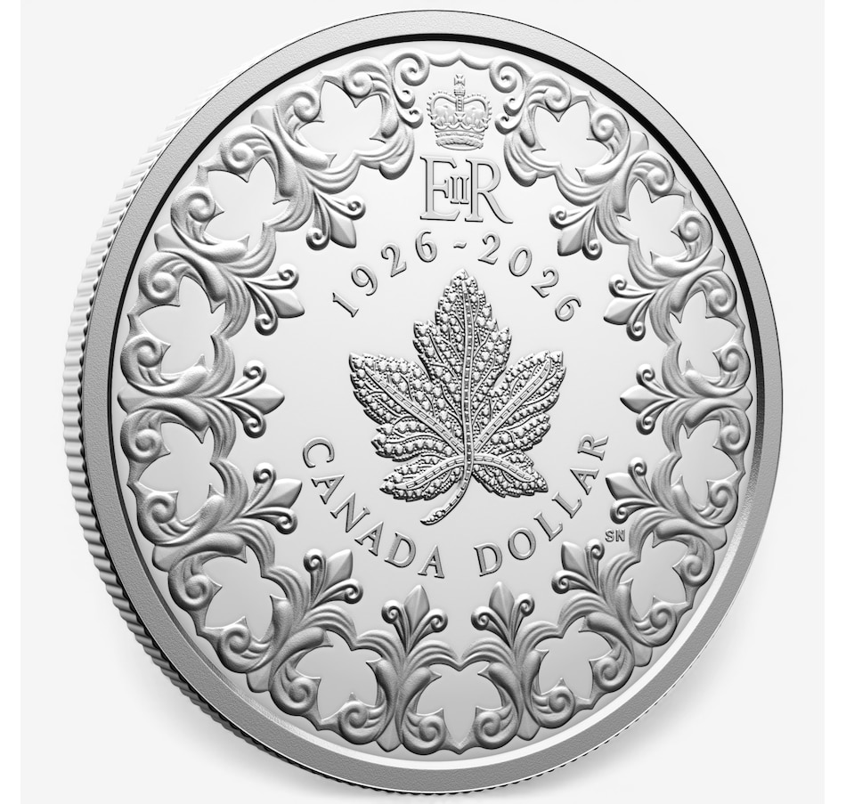 This 99.99 percent pure silver special-edition dollar marks the 100th anniversary of Queen Elizabeth II's birth by presenting a uniquely Canadian tribute: a representation of the Diamond Maple Leaf Brooch worn by Queen Elizabeth II as a symbol of her personal connection to Canada, accompanied by the Royal Cypher (top) that served as her personal device. A flourish of filigree crowns the noble leaf, symbolizing grace and heritage and includes 13 maple leaves (one for each province and territory) that lie nestled in the filigree's negative space—a subtle-but-profound tribute threaded through the artistry, much like Queen Elizabeth II's steadfast presence in Canada's story. The birthday tribute extends to the coin's obverse, which features the effigy of Queen Elizabeth II by Susanna Blunt—a fixture on Canada's coins from 2003 until 2023.