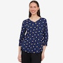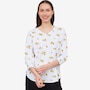 • Smocked 3/4 length sleeves, v-neckline, smocking detail at cuff