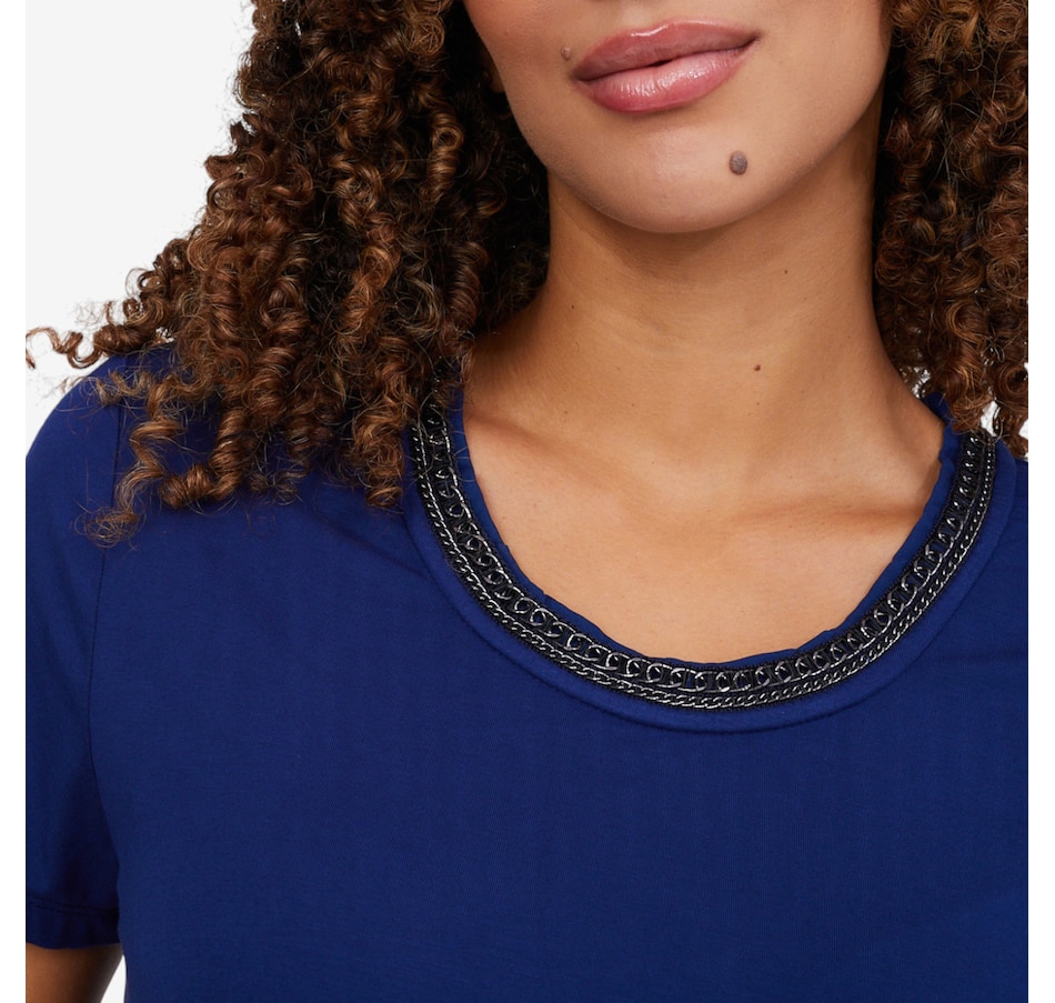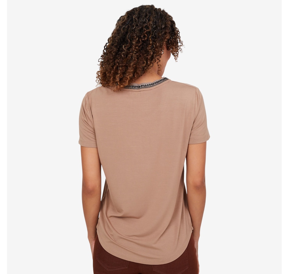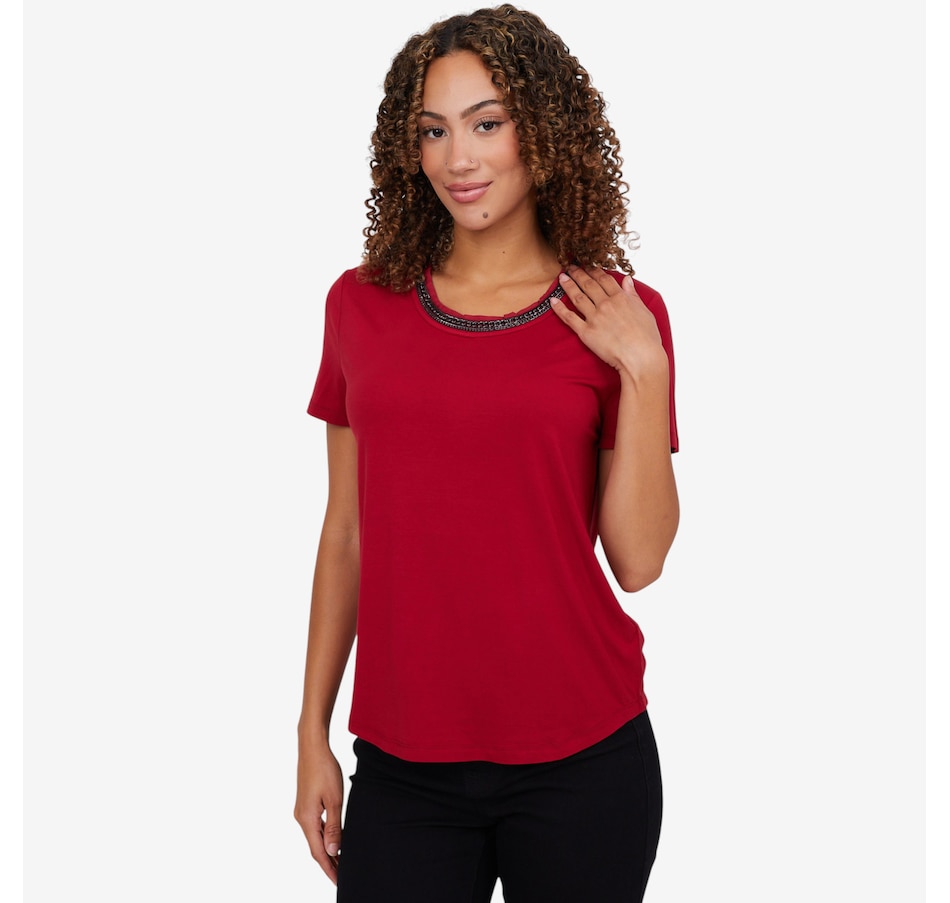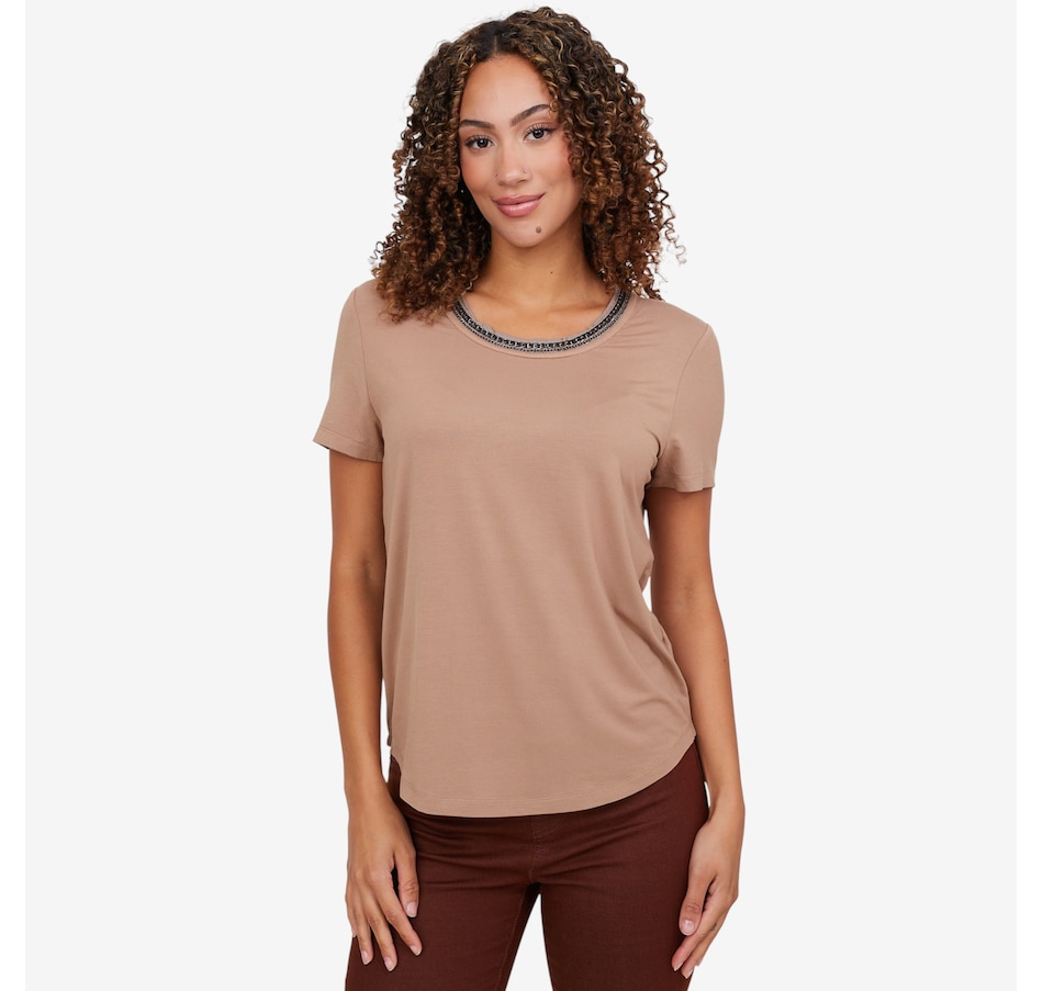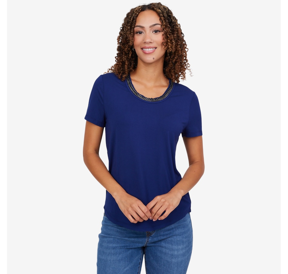 Add a subtle sparkle to your everyday look with this embellished U-neck tee from Diane Gilman.
