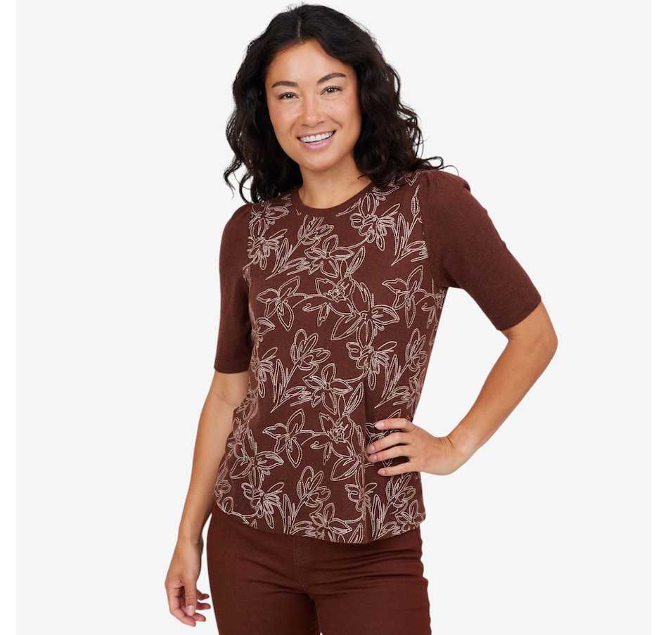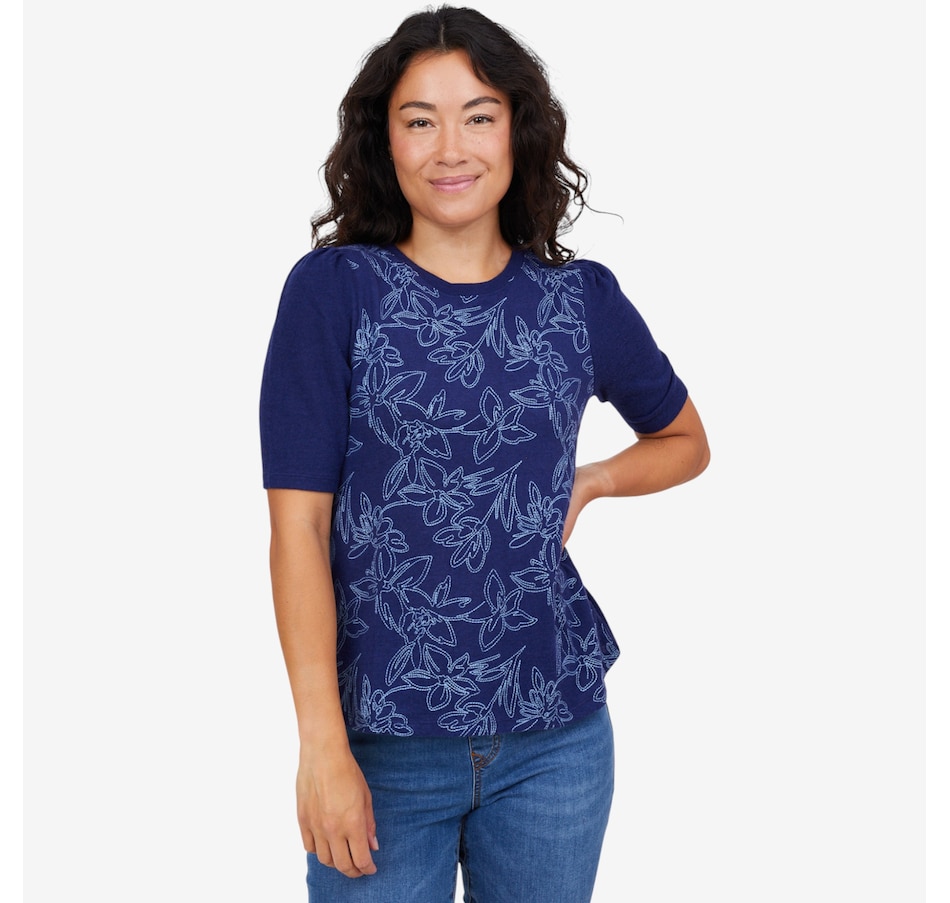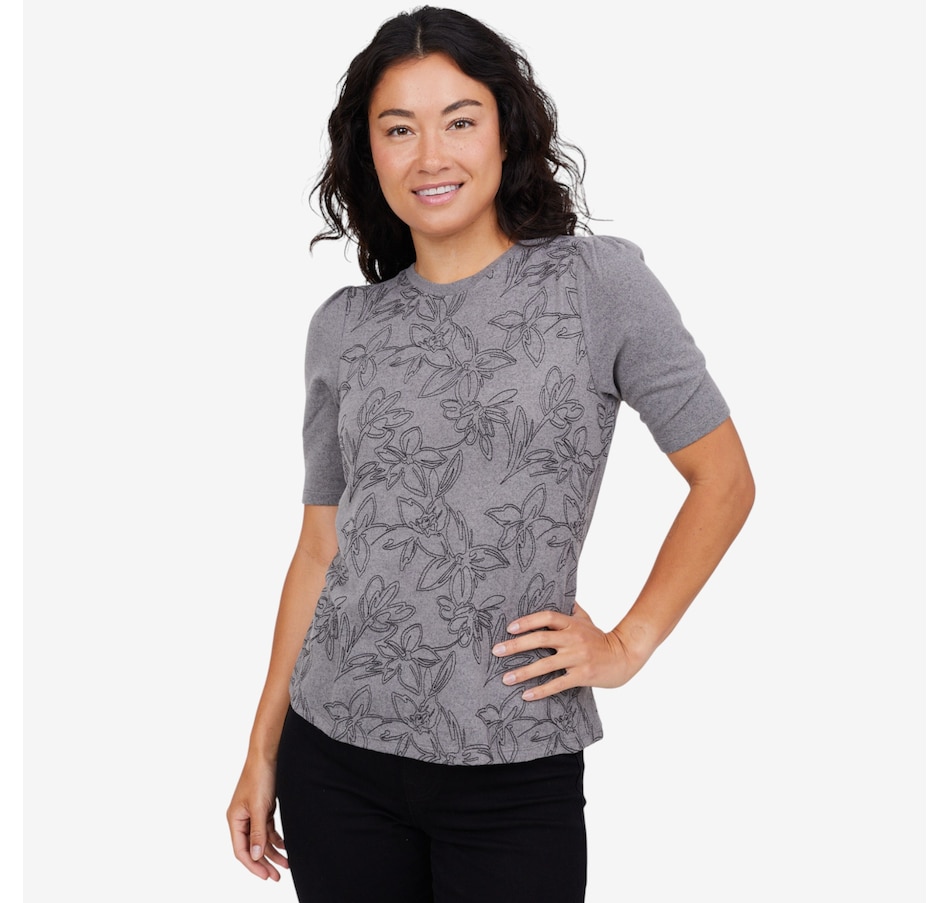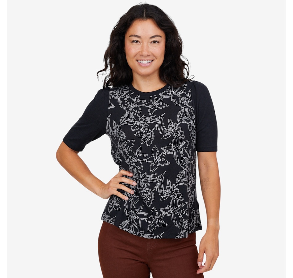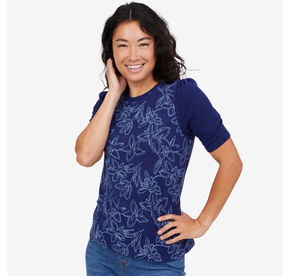 Add a touch of charm to your wardrobe with this embroidered puff sleeve top from Diane Gilman.