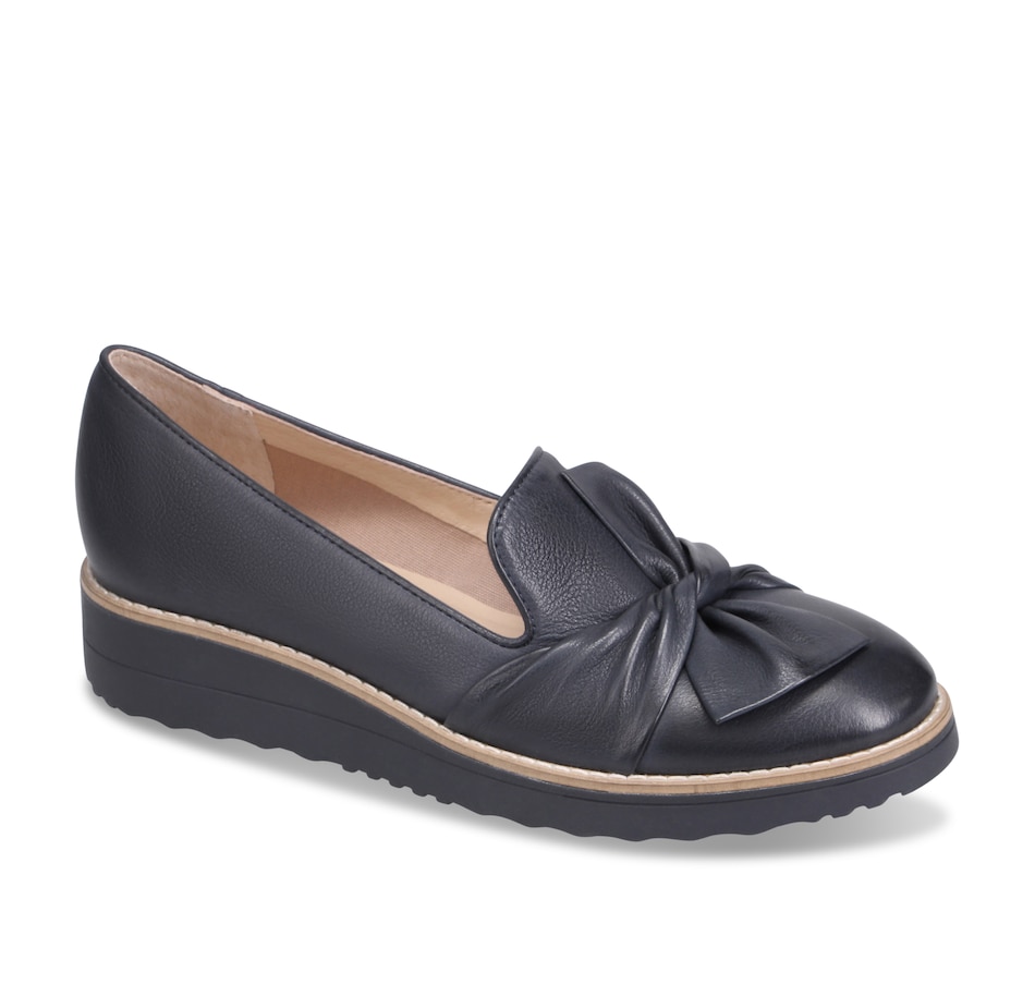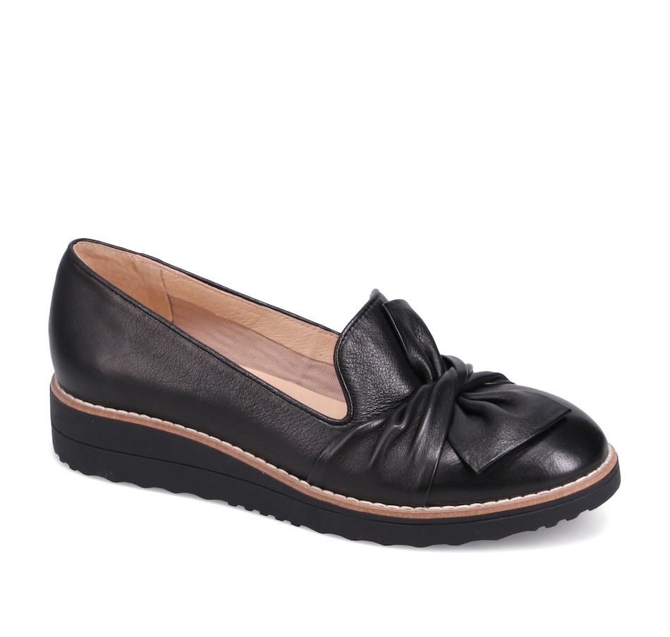Kick it up a notch in these contemporary leather loafers from Django And Juliette. OCLEM adds a sporty athleisure twist to a classic dressy style, resting on a low foam wedge. Â A pretty bow embellishment gives it more flair.