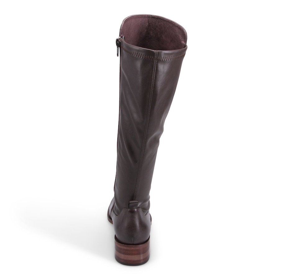 The Fox is a leather knee-high boot with stretch back panel and an inside zip. Resting on a stacked heel is a chic design that provides great comfort and a flattering fit every time. It finishes with a square toe.