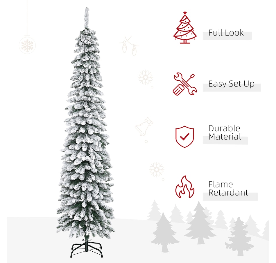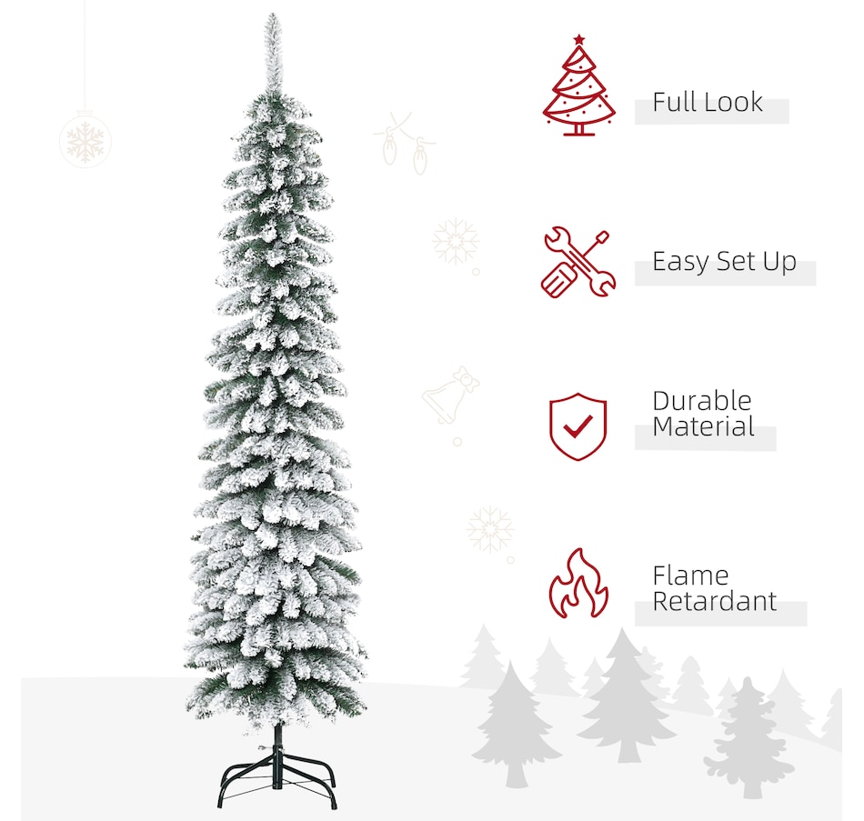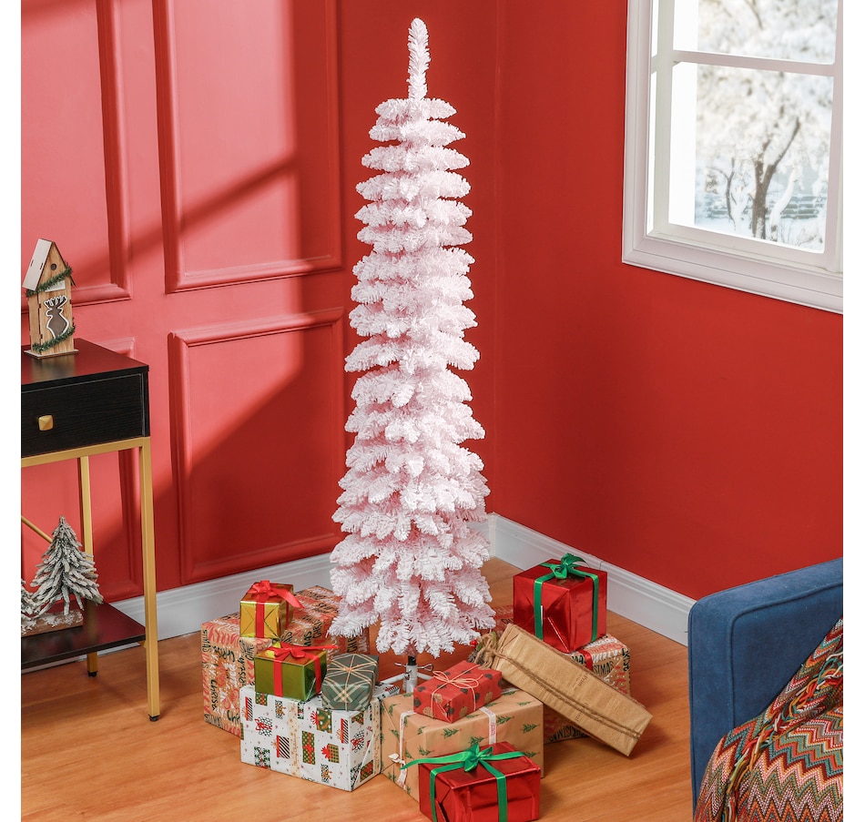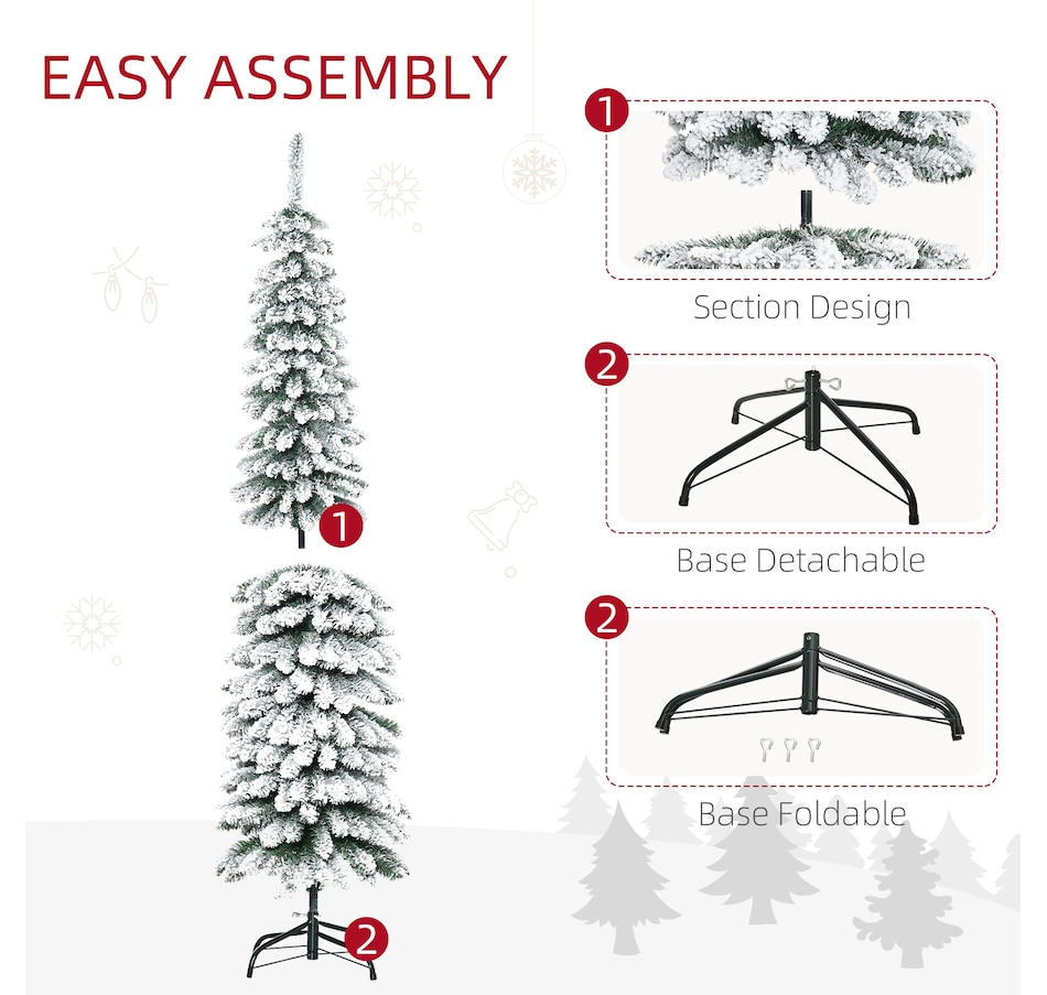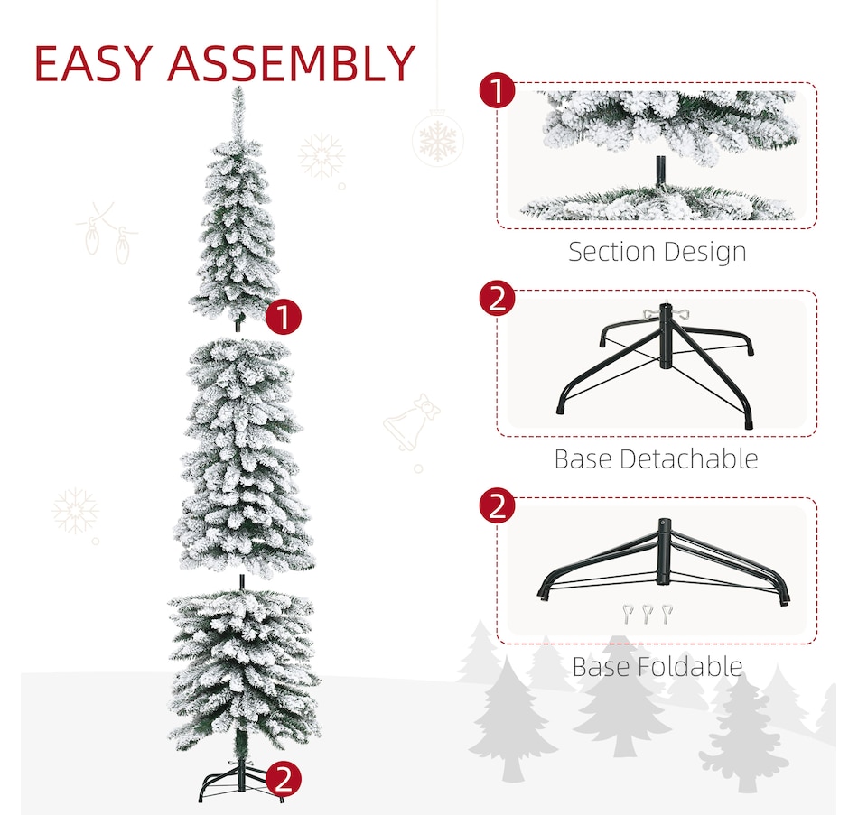 HOMCOM's slim Christmas tree selection gets you all the ambience the holiday brings without any of the mess the holiday brings. Spending time together with friends and family is really what Christmas is all about, and your tree is something you shouldn't have to mess with (ugh). Our HOMCOM skinny Christmas tree will help take some of the hassle out of the holiday. Little mess, simple assembly, and impeccable ambience help make your season just a little brighter.Features:
