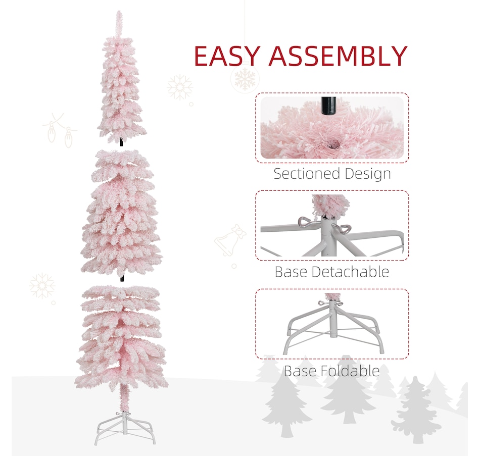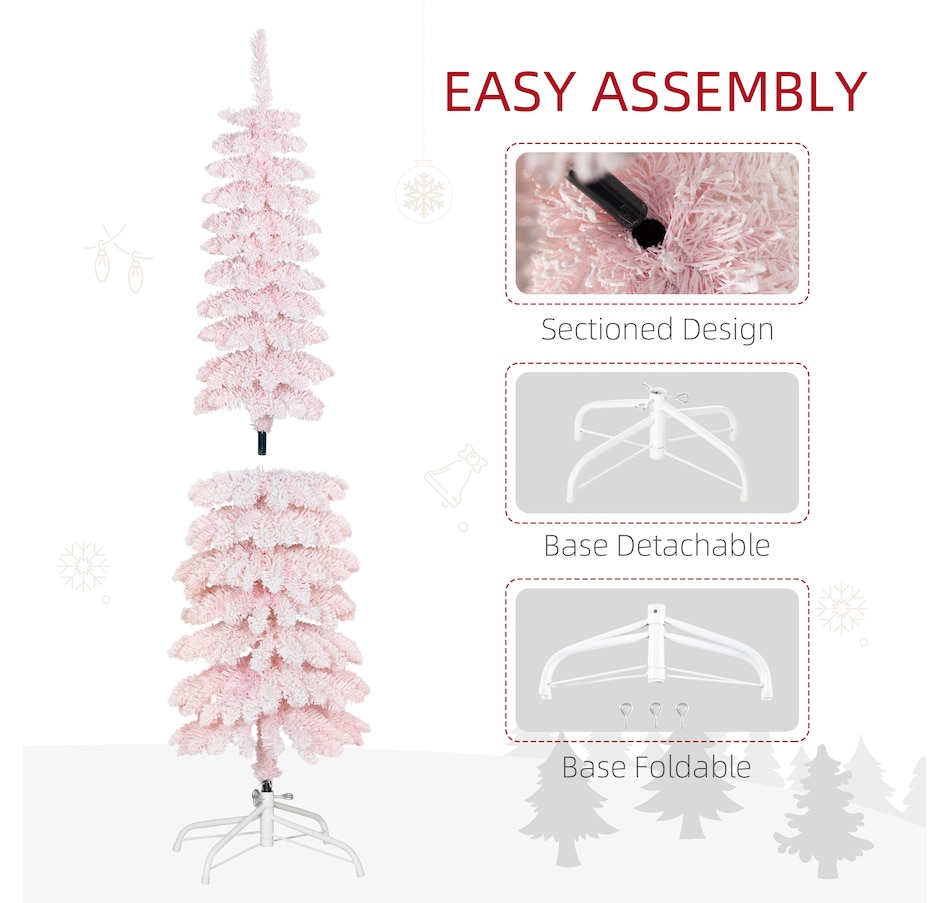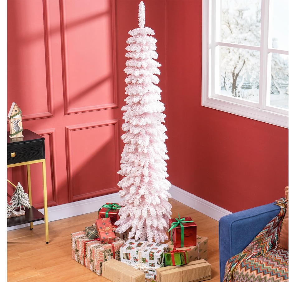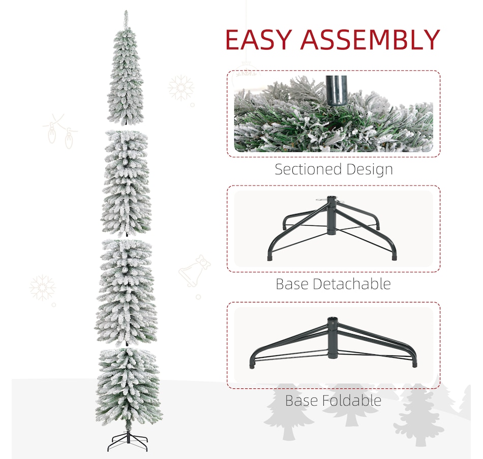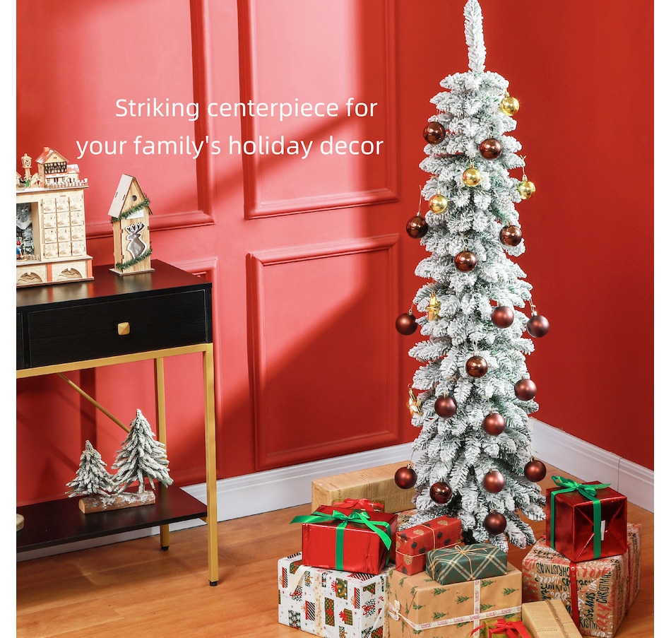 HOMCOM's slim Christmas tree selection gets you all the ambience the holiday brings without any of the mess the holiday brings. Spending time together with friends and family is really what Christmas is all about, and your tree is something you shouldn't have to mess with (ugh). Our HOMCOM skinny Christmas tree will help take some of the hassle out of the holiday. Little mess, simple assembly, and impeccable ambience help make your season just a little brighter.Features: