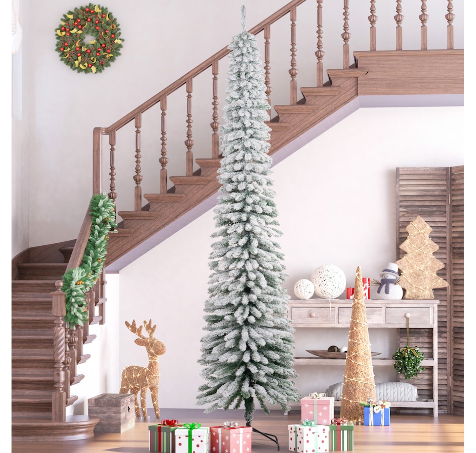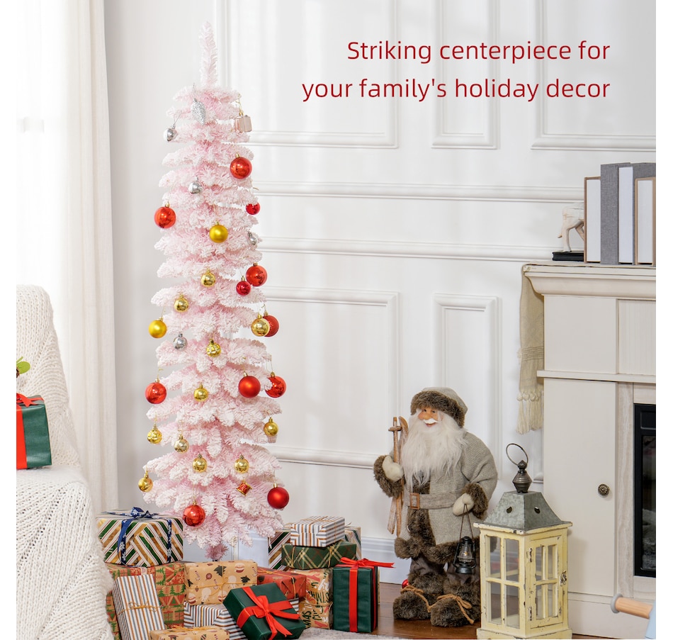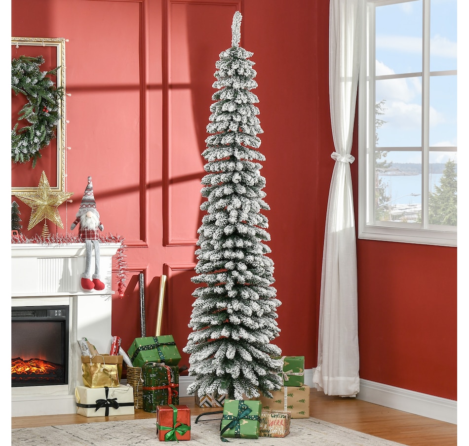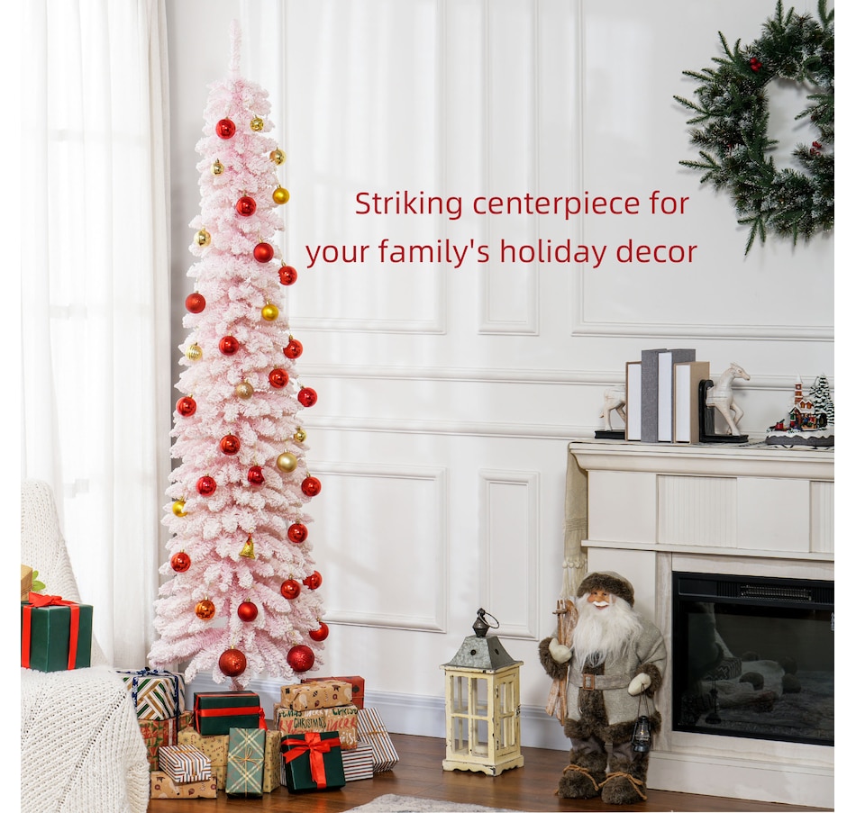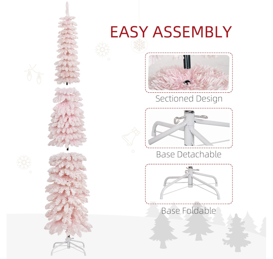 HOMCOM's slim Christmas tree selection gets you all the ambience the holiday brings without any of the mess the holiday brings. Spending time together with friends and family is really what Christmas is all about, and your tree is something you shouldn't have to mess with (ugh). Our HOMCOM skinny Christmas tree will help take some of the hassle out of the holiday. Little mess, simple assembly, and impeccable ambience help make your season just a little brighter.Features:
