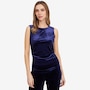 This is a clean, minimalist sleeveless tank. The smooth stretch fabric provides comfort and flexibility, making it suitable for layering or wearing alone. Its luxurious velvet finish elevates this piece with the potential to make every ensemble something special.Â