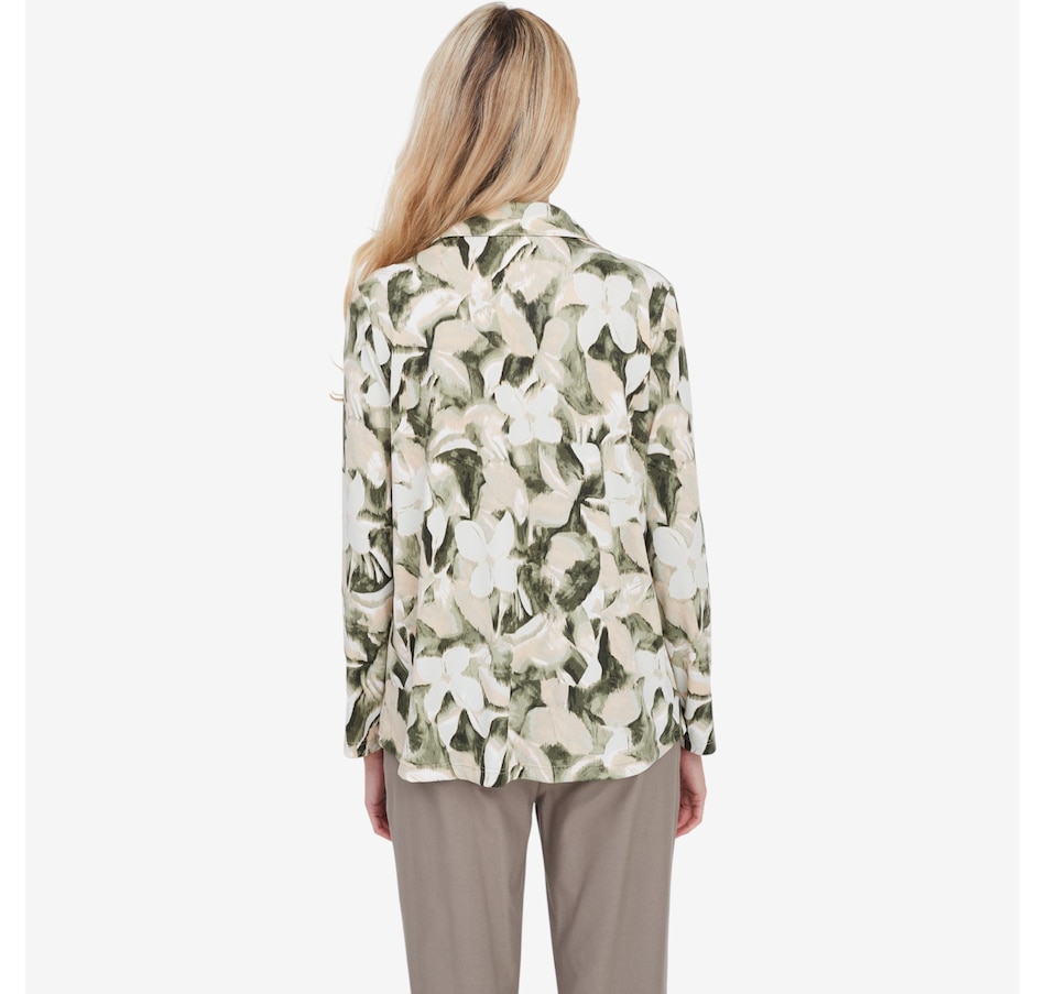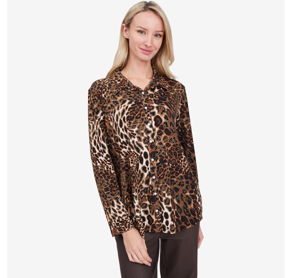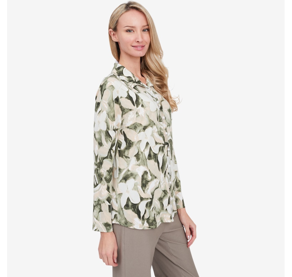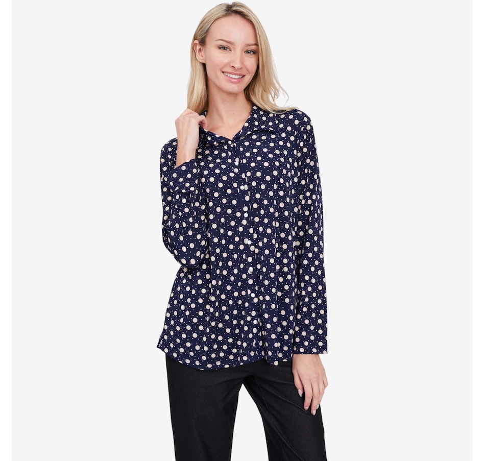 Available in a trio of different colours, you'll elevate your look in vibrant style with this printed long sleeve shirt from Kim and Co.