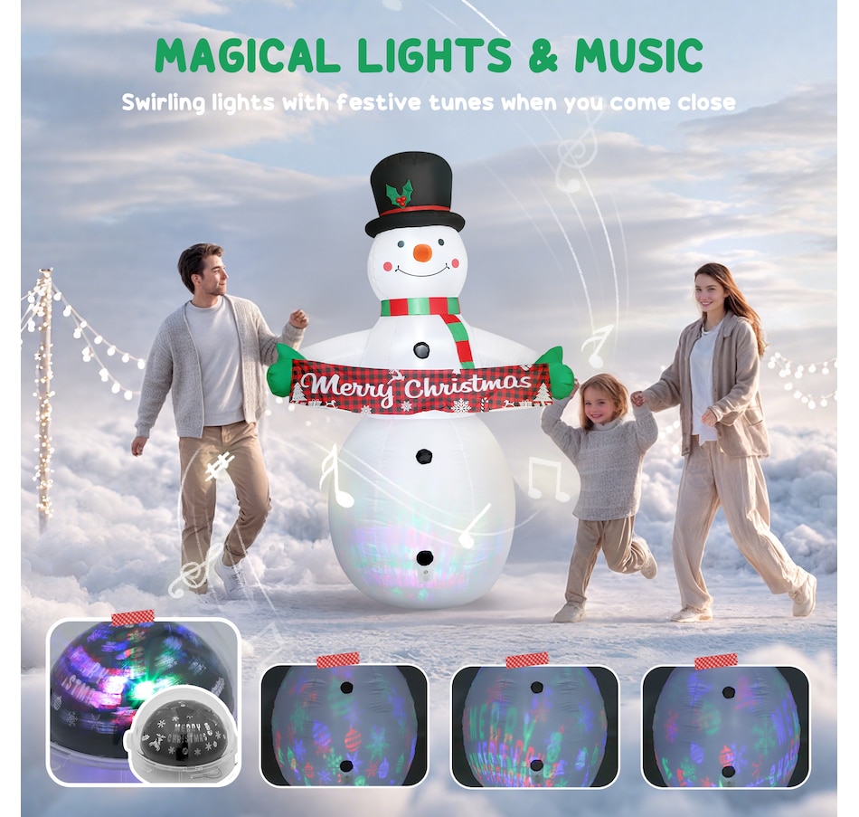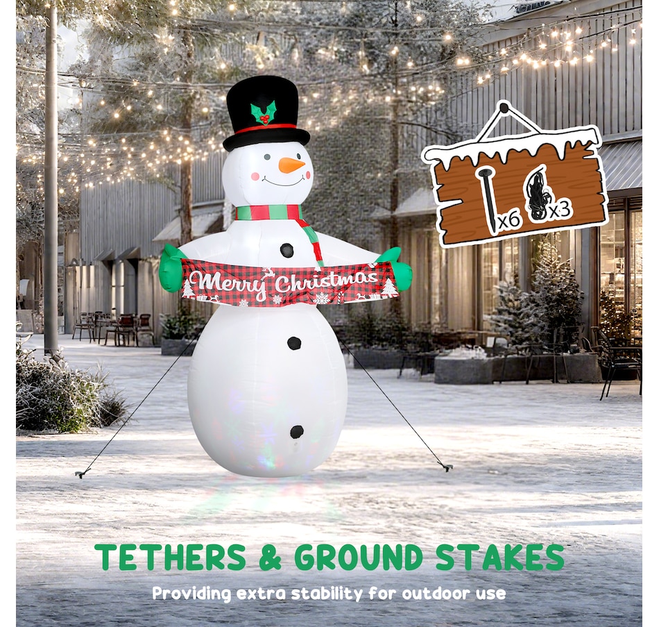 Struggling to create a standout holiday display? Don't let complicated setups and dull decor dim your festive spirit. This Outsunny inflatable snowman offers an effortless solution. It self-inflates in moments, coming alive with classic songs and dazzling LED projections. Your yard instantly becomes a vibrant hub for memorable snowman christmas decorations, delighting guests and family all season long.Features: