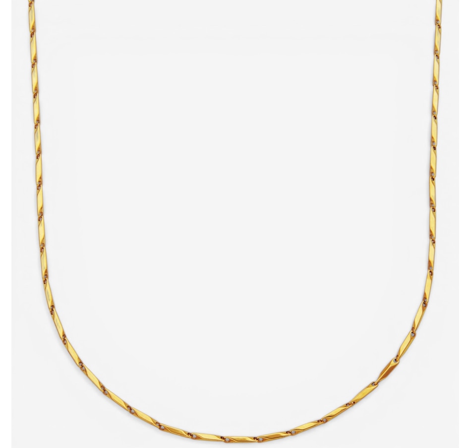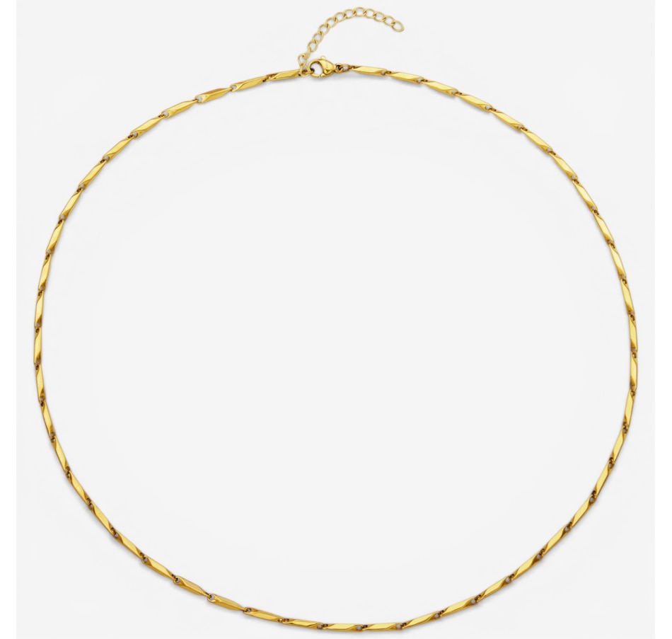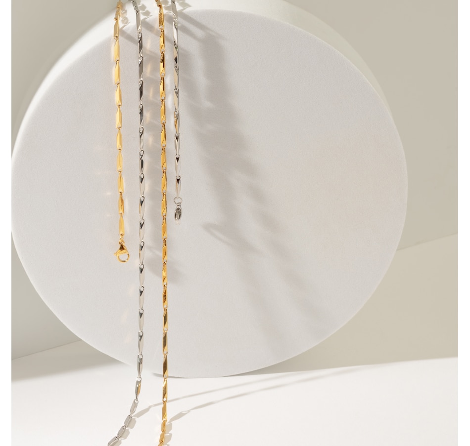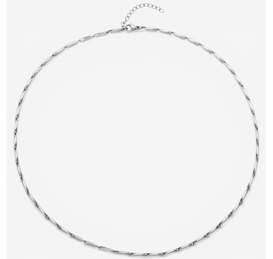 This necklace features a polished diamond‑shaped link design that adds refined shine and modern dimension to any look. The smooth, flowing profile creates a sleek, elegant silhouette that layers beautifully or stands out on its own. Lightweight and lovely, it brings a contemporary touch to any jewellery collection.
