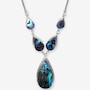 This necklace highlights the natural iridescence of abalone, arranged in a graceful “Y” silhouette that brings elegant movement and colour to the design. The polished inlays create a vibrant focal point, while the silverwork adds detail throughout. Lightweight and versatile, it offers a refined touch to any jewellery collection.