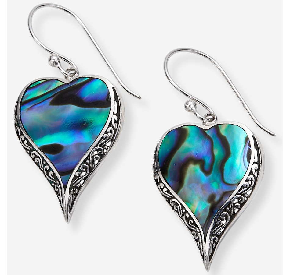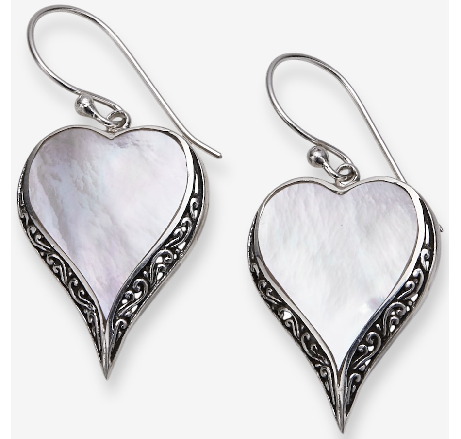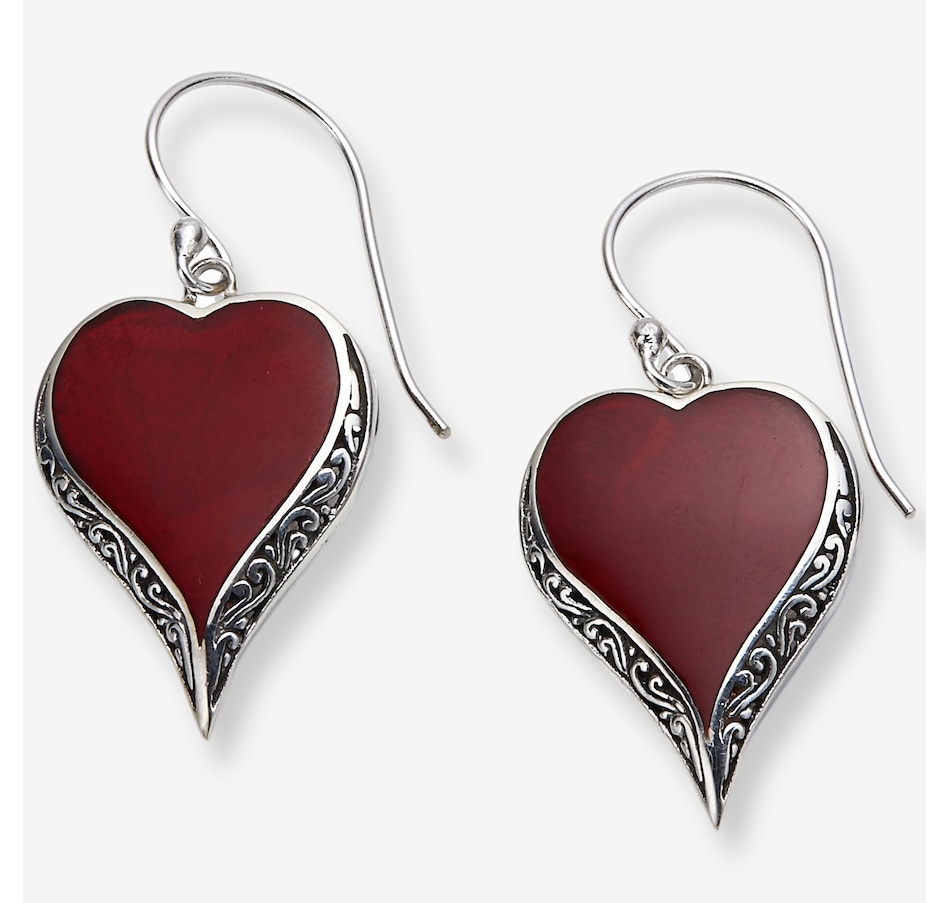 • (2) 20x13mm heart bezel set gemstone inlay (coral, abalone or mother of pearl) (1.70 av. ctw total)