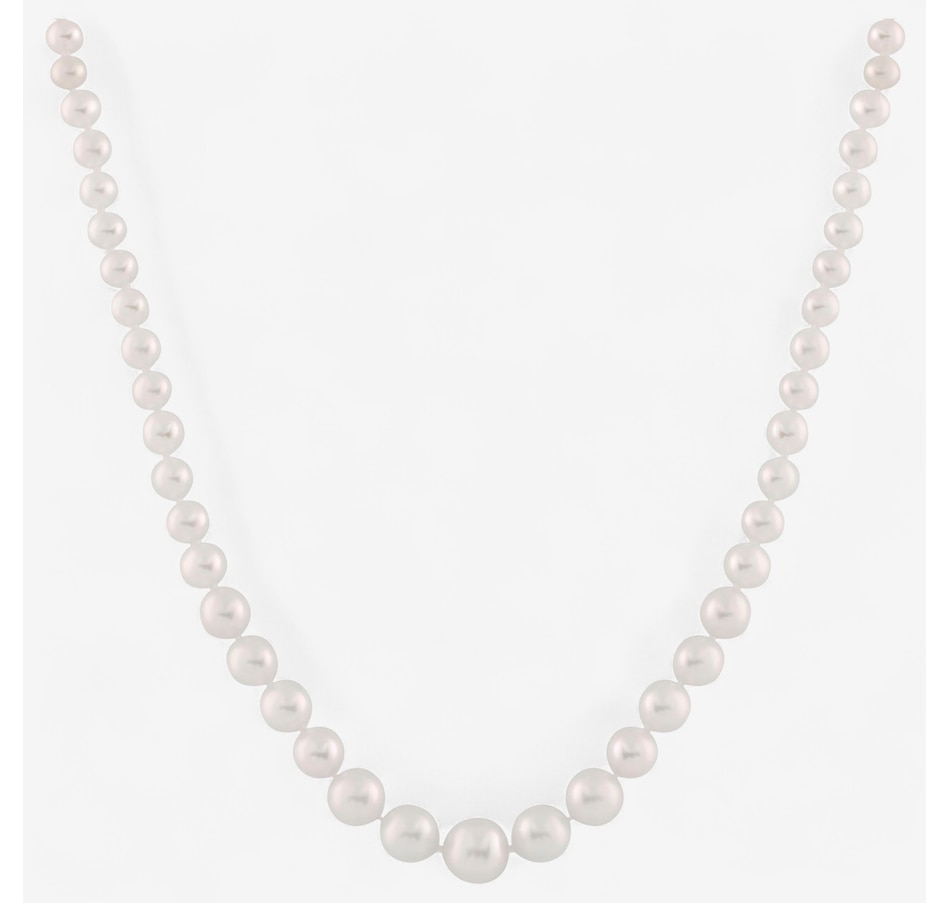 14K Yellow Gold Graduated White Fresh Water Pearl Necklace