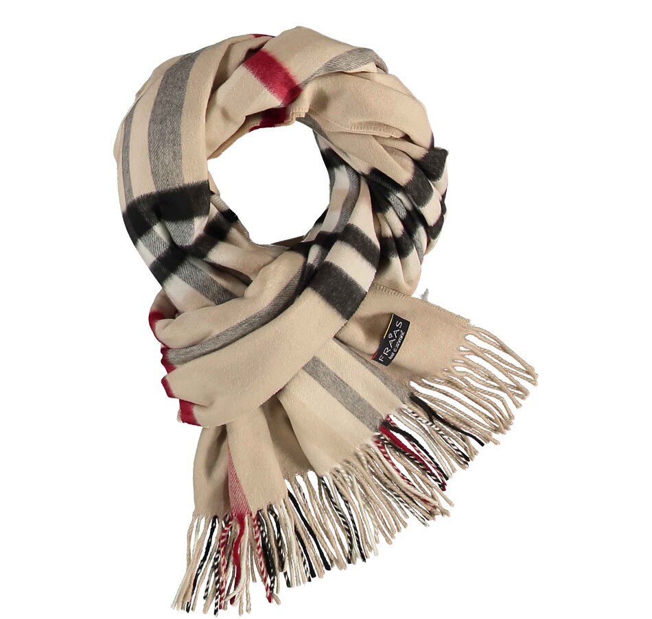 Trendsetters won't be able to get enough of this woven scarf in a patented cashmink quality and timeless Fraas plaid design. Fashionable and functional, this transitional wrap/scarf is wonderfully comfortable to wear, and a vibrant update to any outfit. It can be worn in a variety of ways: one casual loop around the neck, tucked in like an infinity-scarf, or as a trendy shawl for extra warmth draped over the shoulders.
