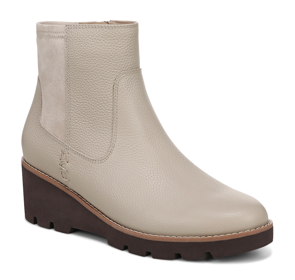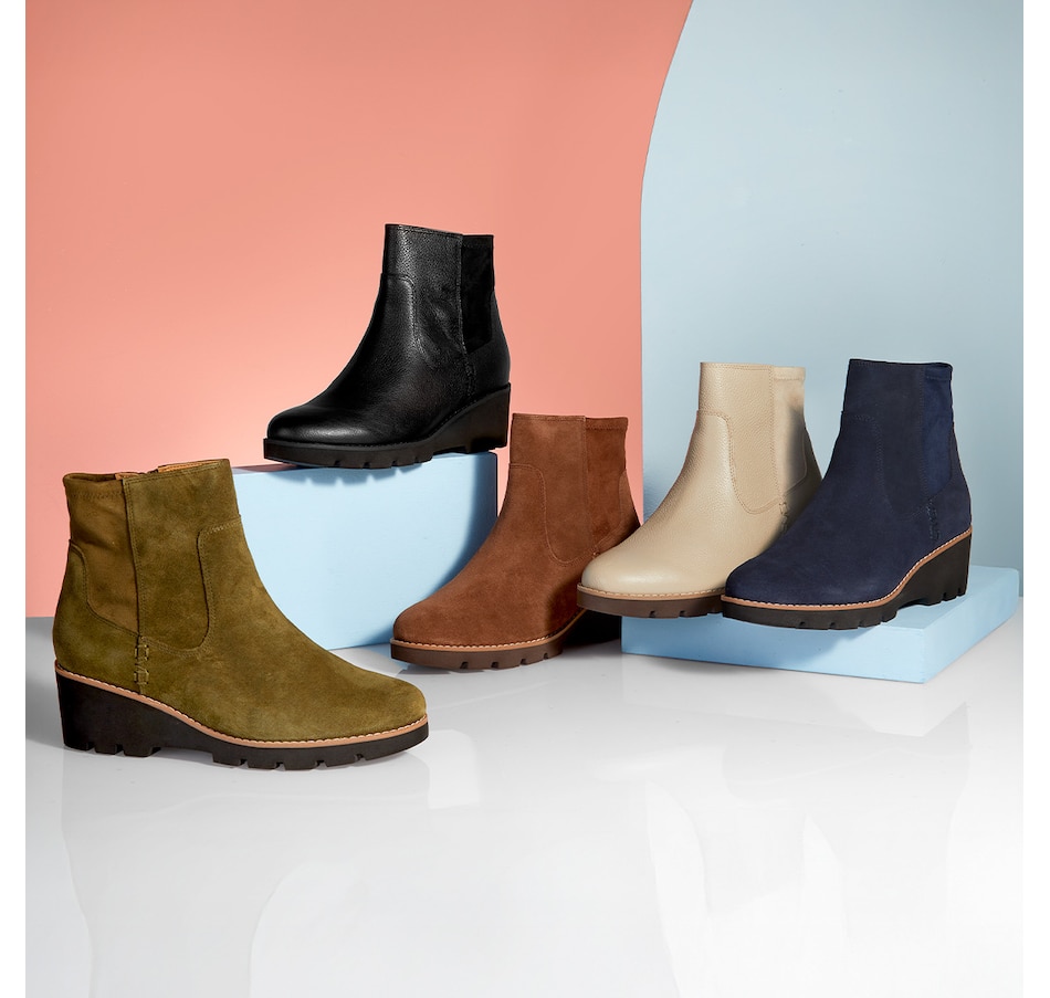 The rugged Ariana ankle bootie is designed to deliver both supportive comfort and chic style. It is lifted on a lightweight wedge that features shock-absorbing cushioning. It finishes with an inside-zip for elevated fashion without a fuss.