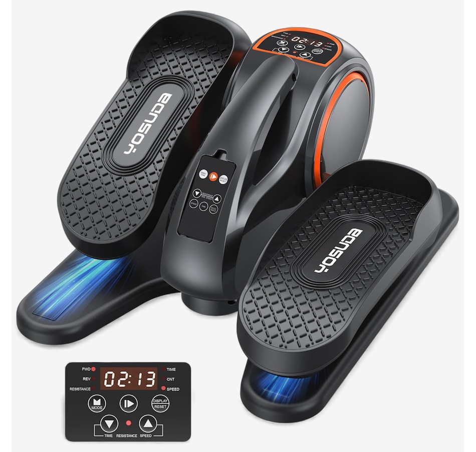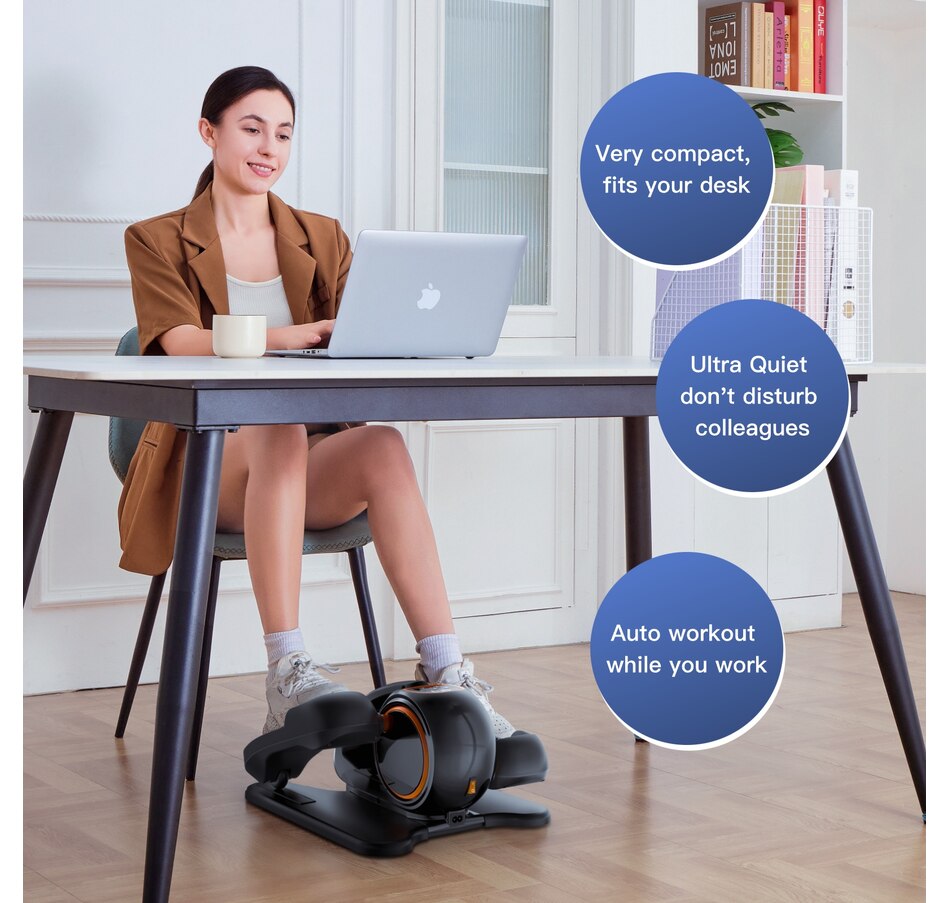 The Yosuda E5 under-desk elliptical trainer helps you stay active while you work. Unlike a mini exercise bike, it has a short stride for gentle muscle activation. With 10 resistance levels and bidirectional movement, you can customize your workout intensity. The motor-driven design ensures effortless exercise, while the non-slip pedals offer stability for most foot sizes.