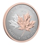 Elegance, history, rarity and intrinsic value combine perfectly to make this 2024 $300 fine platinum coin one of the Royal Canadian Mint's most sought-after collectibles. The design features two sugar maple leaves: a classically rendered leaf in the background, and a multifaceted one in the foreground. Rose gold plating on the rim frames the engraving and highlights the foremost leaf, creating a striking colour contrast. The rim is also plated with rose gold.