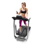 The TreadClimber provides three workouts in one, combing the motions of a treadmill, a stepper and an elliptical for an easy, low-impact workout with high-impact results—and all you do is walk! It can give you an intense cardio walking workout that's easy on your joints and burns up to 2.5 times the calories at the same speed. The TreadClimber can track speed, distance, time and calories, and has a speed range between 0.5 to 4 mph. It also includes a fully backlit LCD display, plus a heart-rate monitor with integrated contact grips and a built-in USB charging port. Its compact design also features a water bottle and media shelf/tablet holder for easier convenience, as well as a Bowflex weight-loss guide.