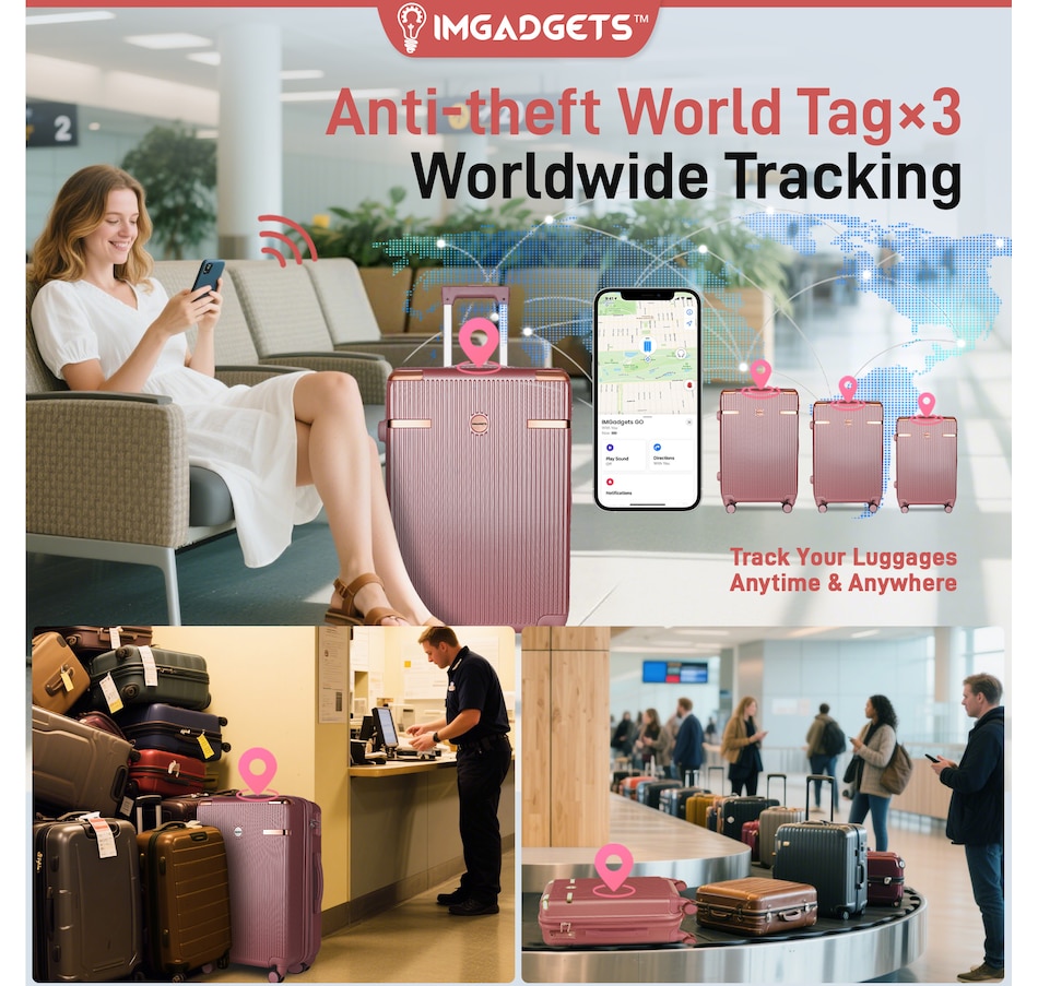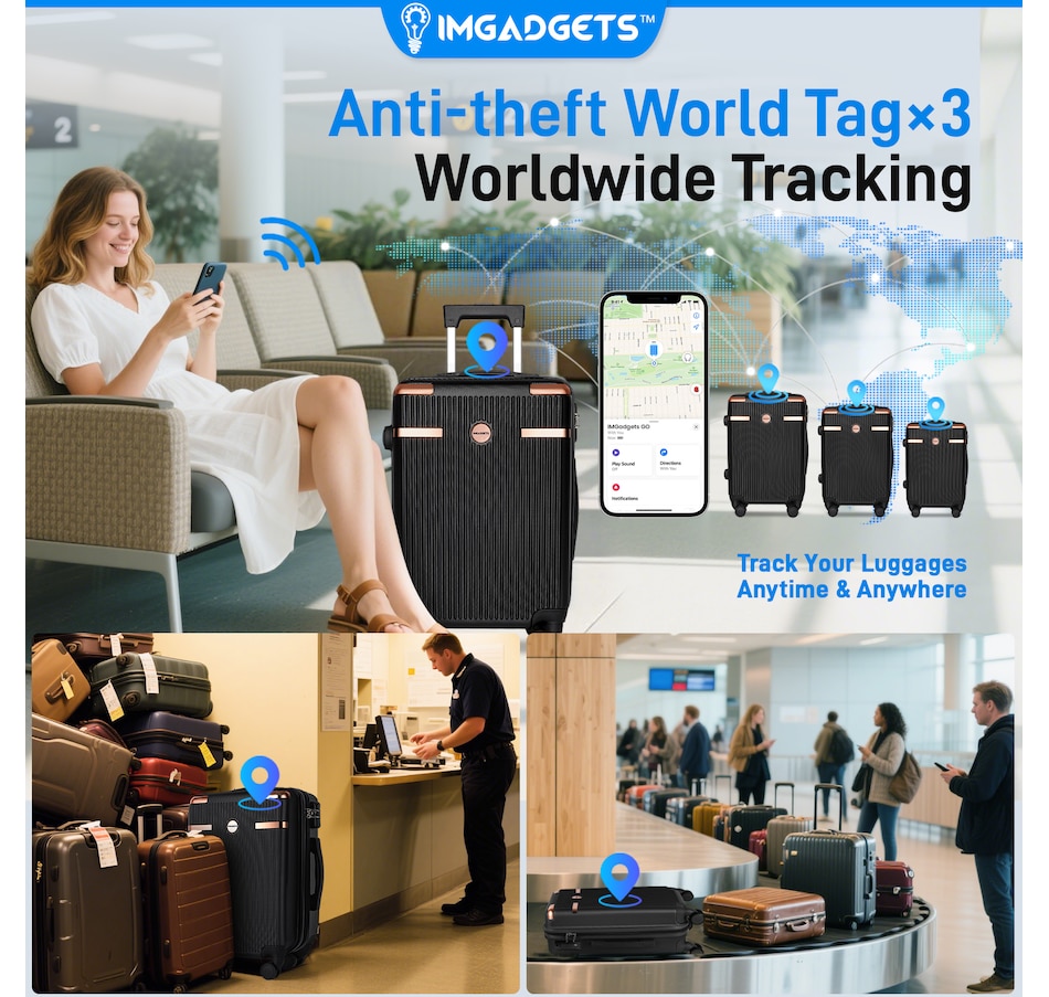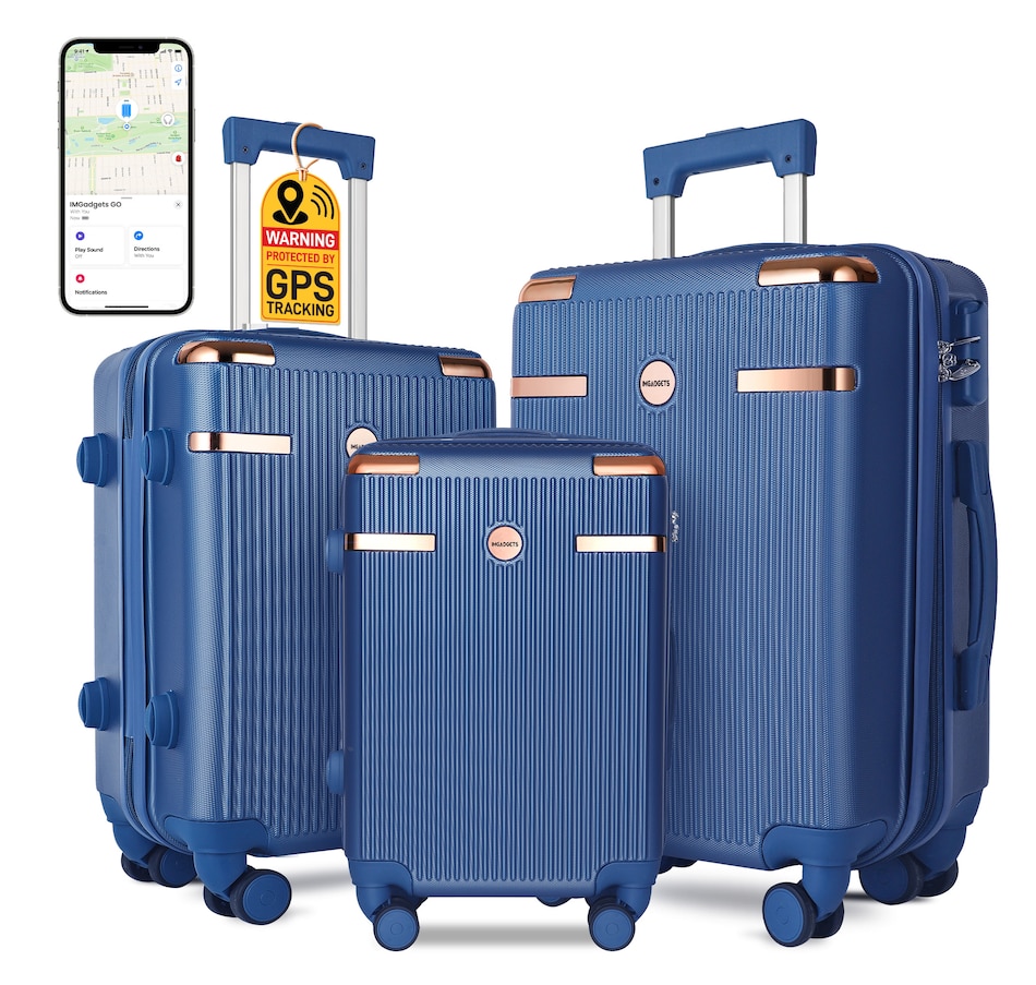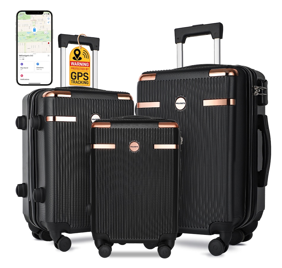 Advanced Smart Tracking with 3 GPS World Smart Tags: The IMGadgets Go Smart Luggage 3PC Set comes equipped with 3 integrated World GPS smart tags (one for each piece) so that you Stay connected to your bags with real-time location updates, giving you extra security and peace of mind. Works with iOS devices only via the Apple Find My network.