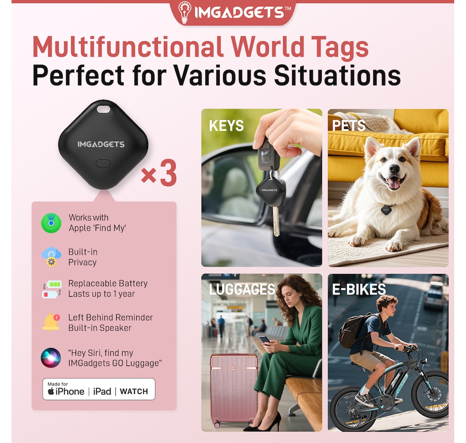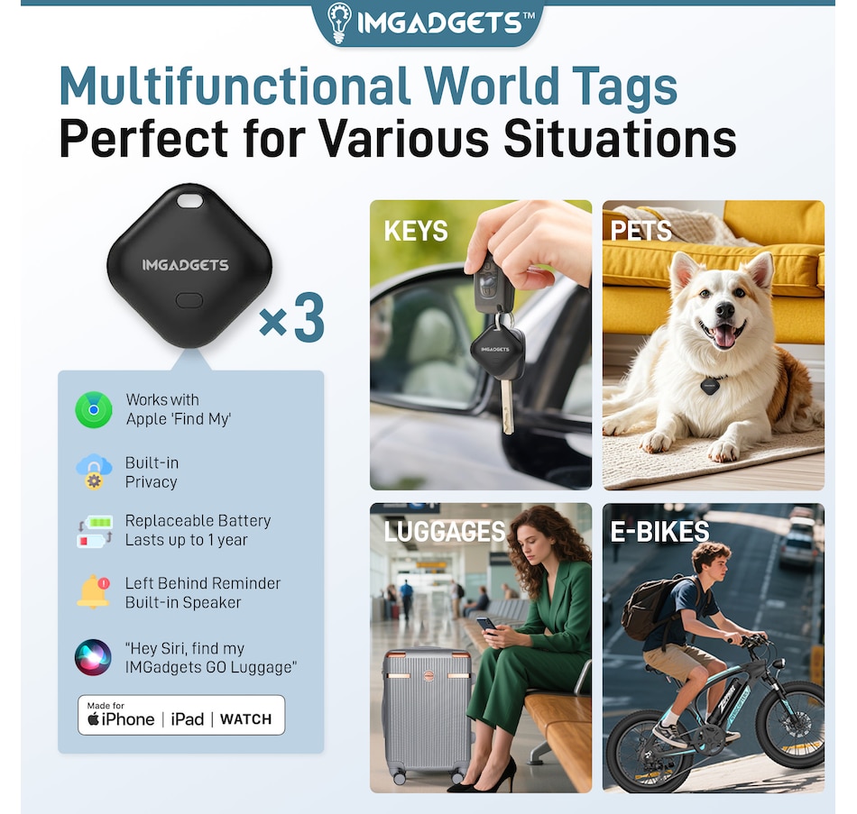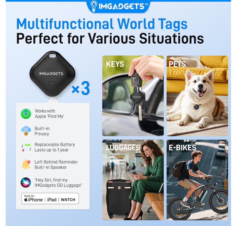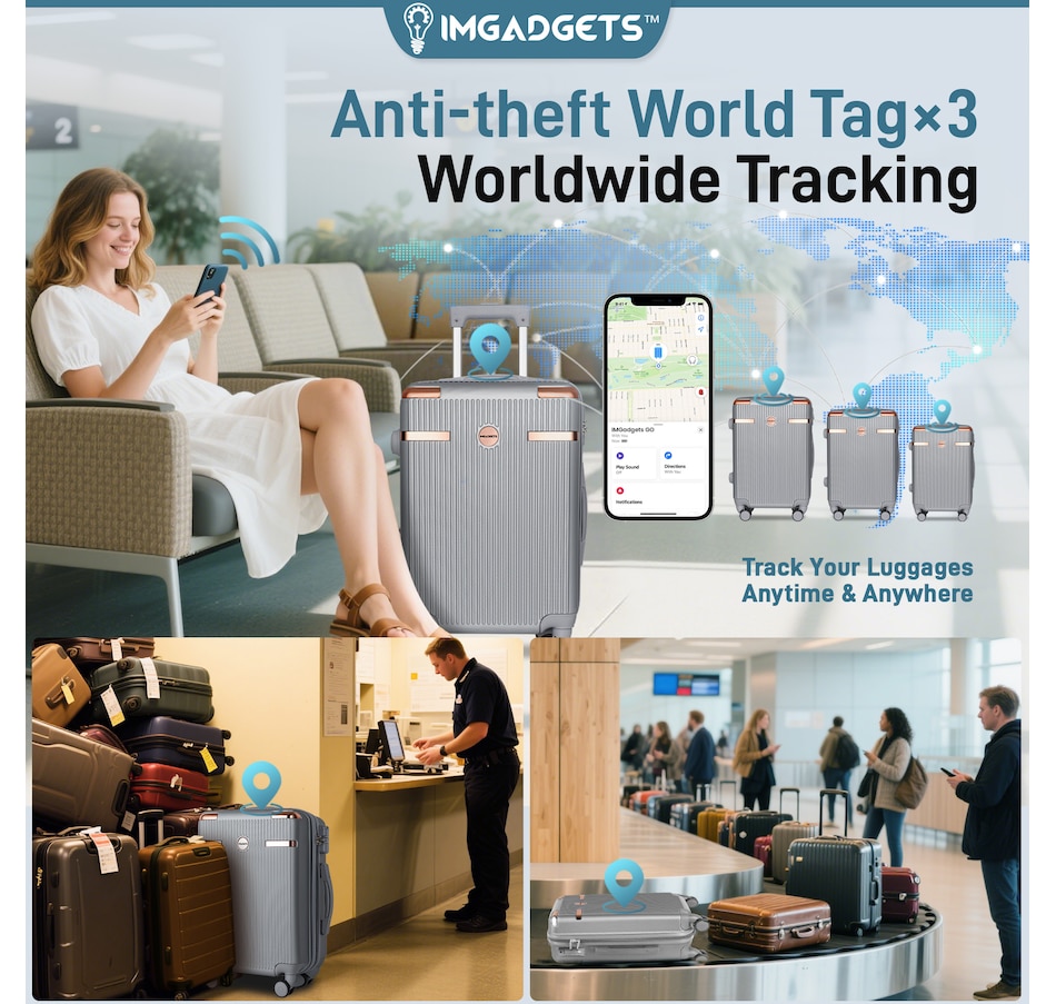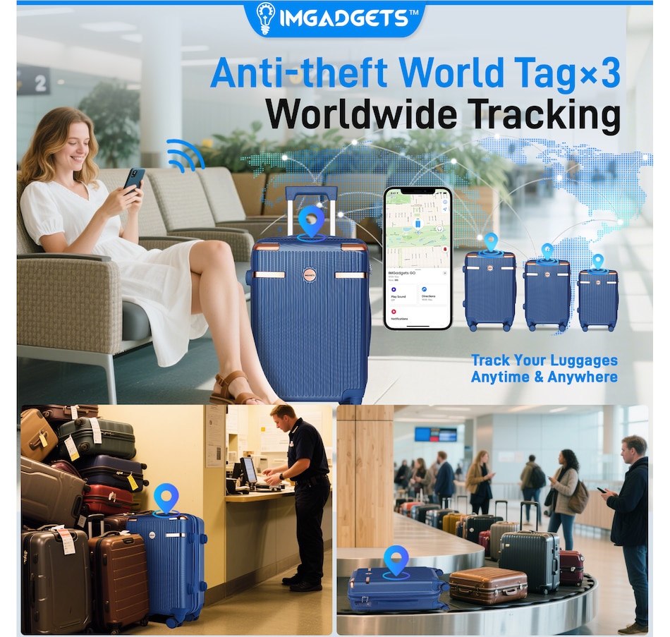 Advanced Smart Tracking with 3 GPS World Smart Tags: The IMGadgets Go Smart Luggage 3PC Set comes equipped with 3 integrated World GPS smart tags (one for each piece) so that you Stay connected to your bags with real-time location updates, giving you extra security and peace of mind. Works with iOS devices only via the Apple Find My network.