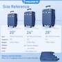 What’s in the Box: 1 x 20” Carry-On Luggage, 1 x 24” Medium Suitcase, 1 x 28” Large Traveling Bag, 1 x User Manual, 1 x Warranty Information, 1 x Feedback Card, 3 x smart tags
