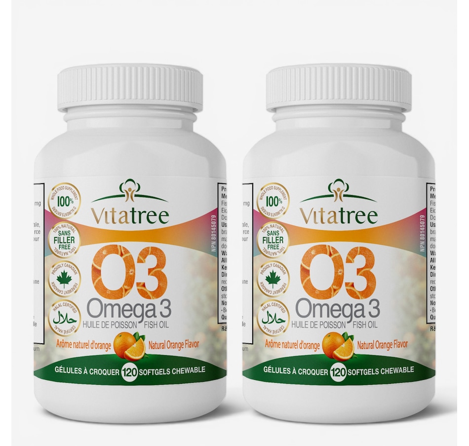 VitaTree Omega‑3 Fish Oil is a high-quality omega‑3 fish oil supporting cardiovascular, cognitive, and joint health. Free from mercury, preservatives, or synthetic carriers. It is all natural in an easy‑to‑take form of gel capsules that can be either swallowed or chewed, with a creamy orange taste, without any fishy aftertaste.