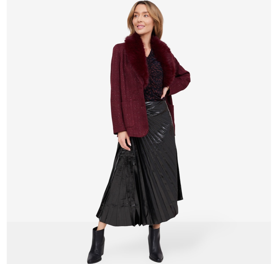 Onyx Long Tweed Wrap Blazer with Detachable Fur Collar