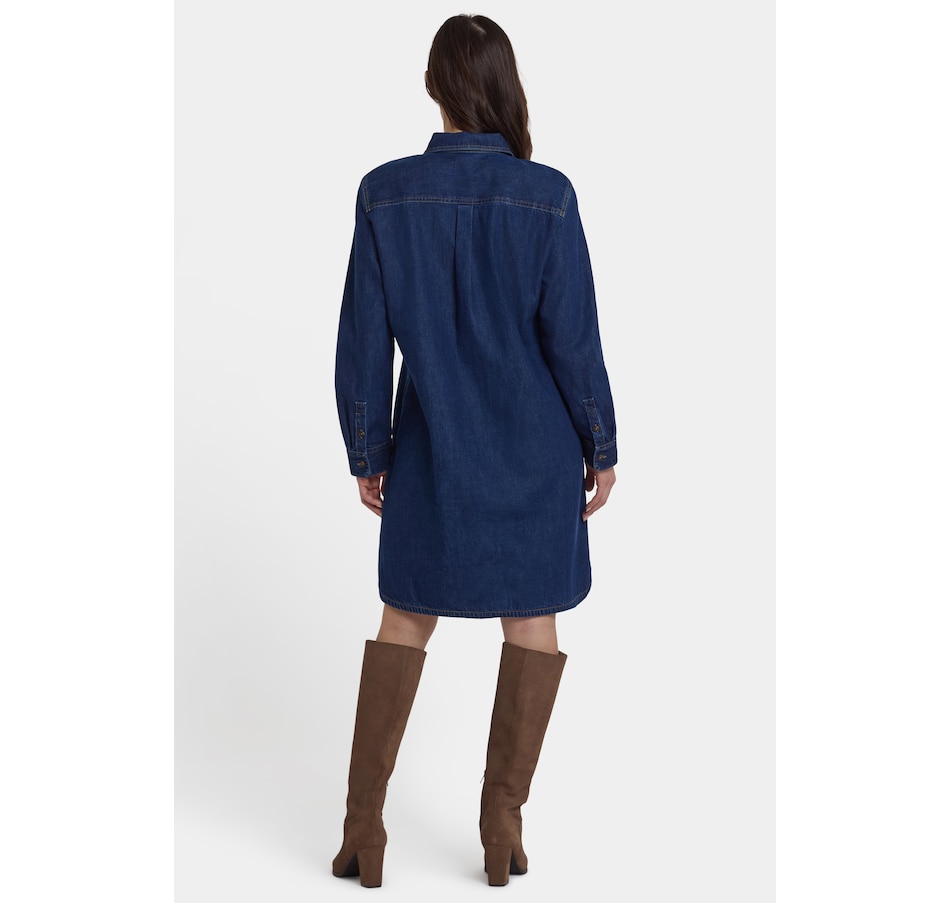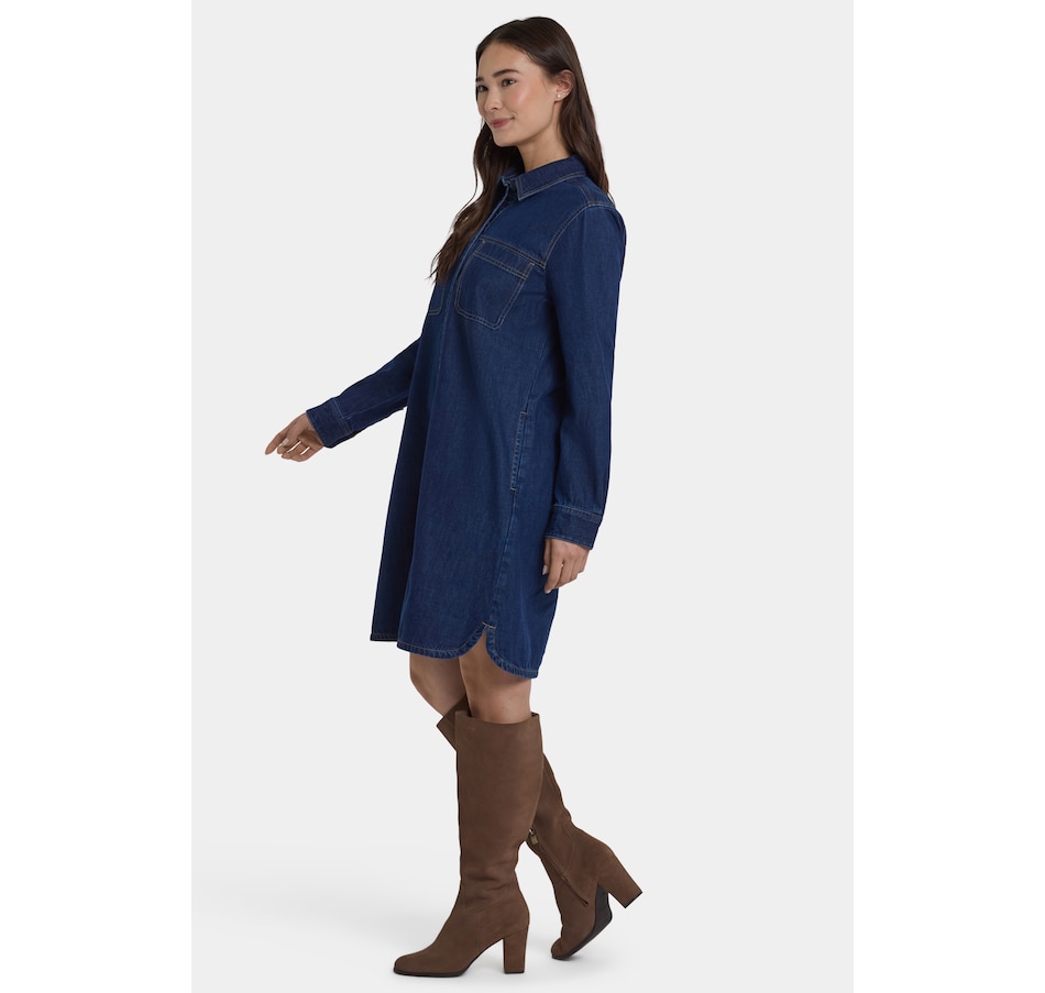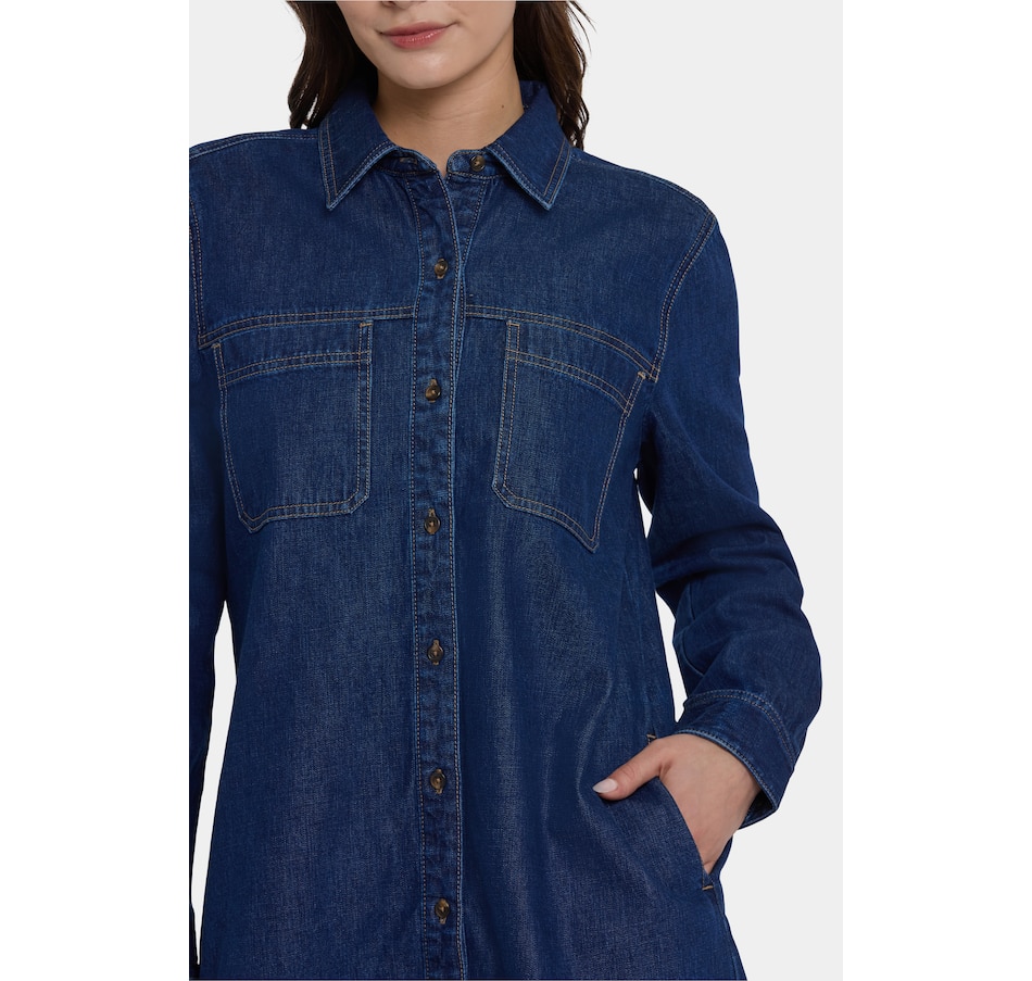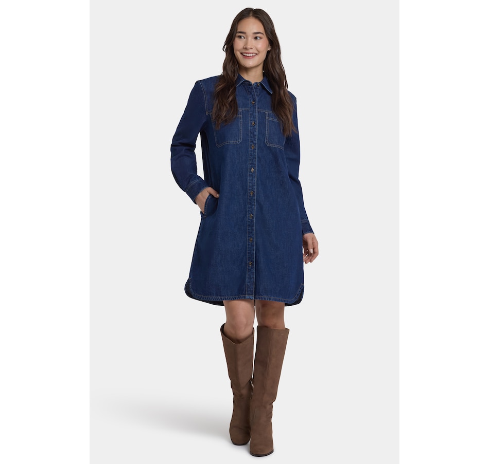 Get ready to turn heads in the Reese denim shirtdress. Made from a flowy cotton chambray, this button front piece is made easy for styling. Accessories your favourite belt to sinch the waist line, or wear it open as a duster cardigan over a tank or tee shirt, tucked into a pair of skinny jeans.
