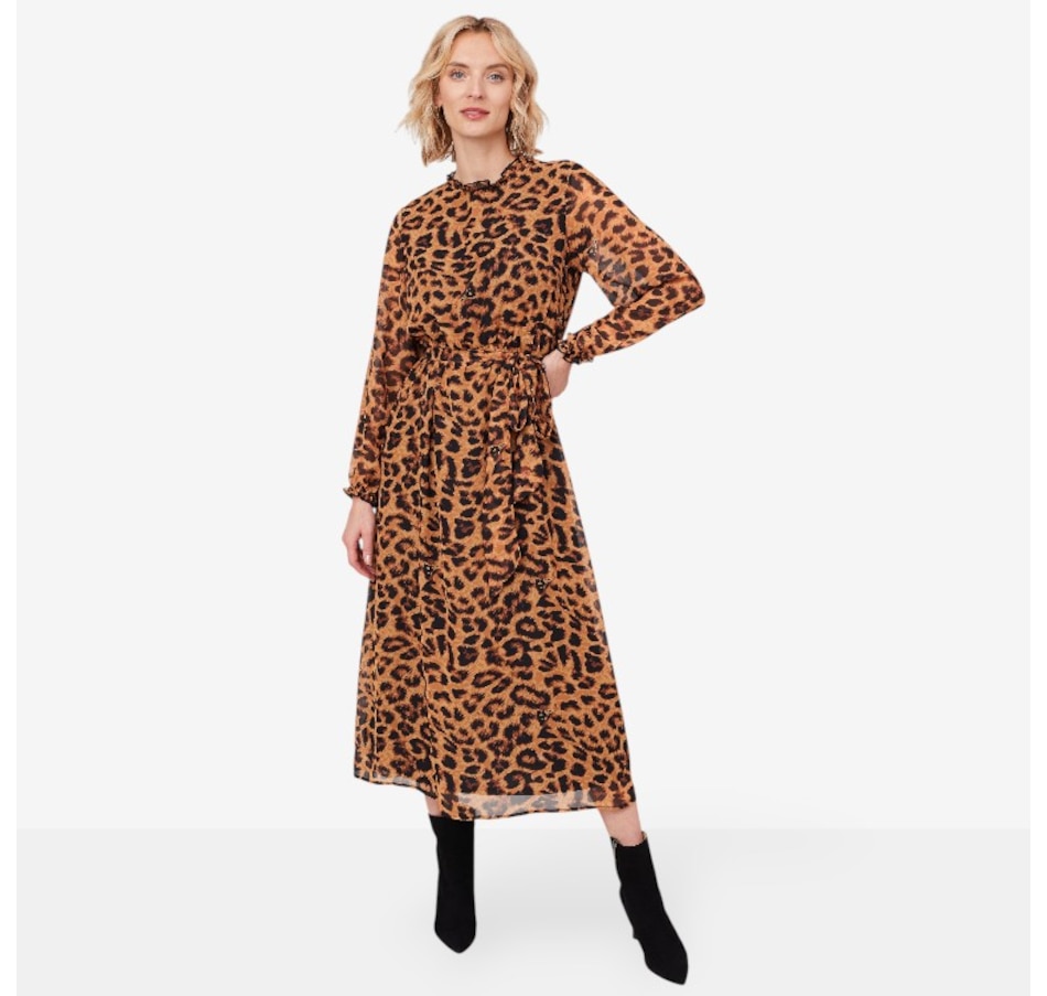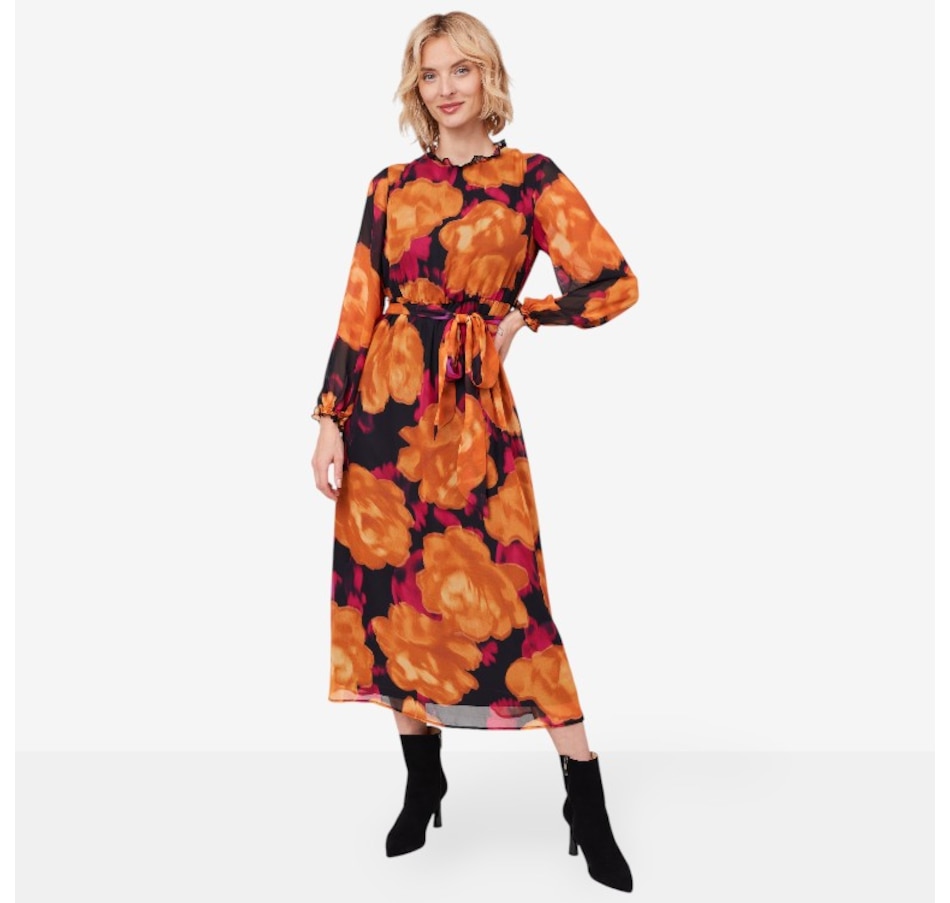 This chiffon maxi dress from Isaac Mizrahi is available in a choice of fun and fashionable prints to elevate your fall look.