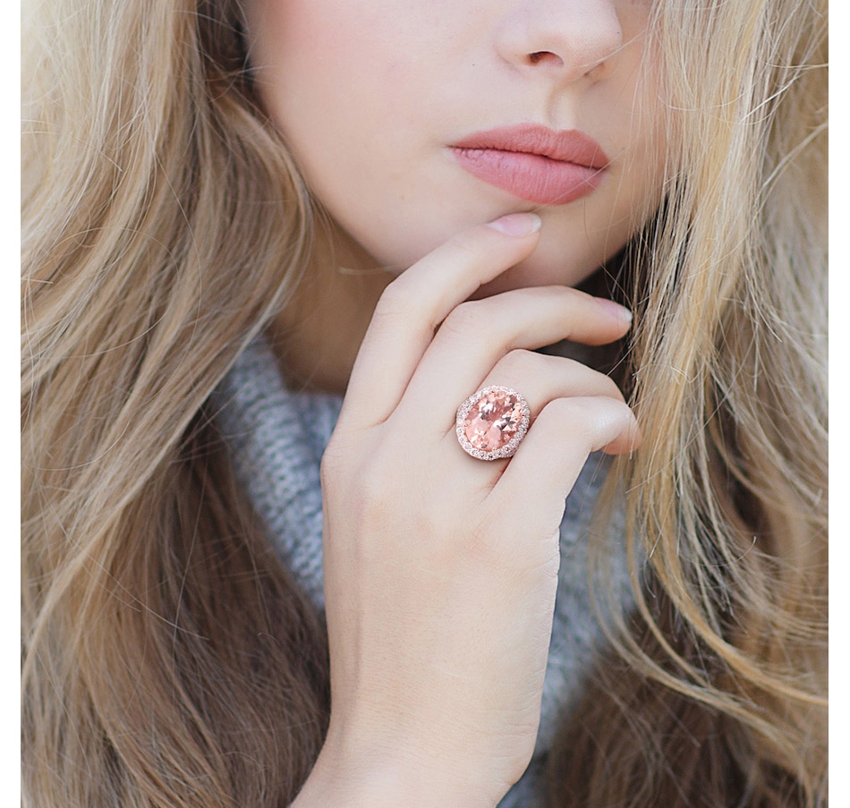 Jewel of a Deal 14K Rose Gold Oval Morganite & Diamond Halo Cocktail Ring