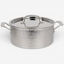 • Composition: traditional hand hammered tri-ply construction; pure aluminum core bonded to a 18/10 stainless steel interior and stainless steel exterior