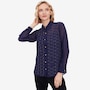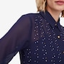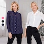 This versatile button-down blouse is crafted from a lightweight polyester with all-over, yet subtle, embellished/textured detailing. It features a collared neckline, long sleeves, and a clean, classic silhouette that's ideal for both workwear and polished casual looks alike.
