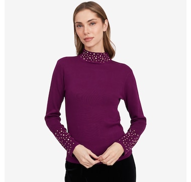 Isaac Mizrahi Chiffon Embellished Button Down Shirt