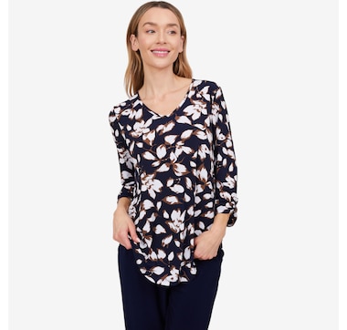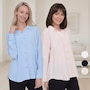 Available in a wide range of colours, you'll finish your look in easy, comfortable style with this relaxed long sleeve shirt from Kim and Co. It features a collar at the neck, full button front closure, a back yoke with pleat, a rounded hem, and a long sleeve with a cuff.