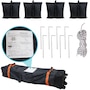 - Includes 1 canopy, 1 carrying bag, 4 ropes, 4 sandbags, and 8 Stakes