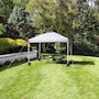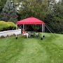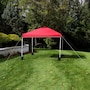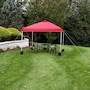 Spend time outdoors in relaxing comfort beneath the shade of this heavy-duty pop-up canopy. This durable tent provides protection from the rain, wind, sun, and other elements when outdoors during friendly gatherings. Made from dependable materials, this canopy features a sturdy, powder-coated steel frame with a tough, 150D Oxford fabric canopy roof to resist water and the elements outdoors. Available in many color options, this pop-up canopy is designed to last with strength and style for years to come. This tent canopy is a wonderful structure for relaxing at the beach, for shelter during camping trips, as a vendor stall, and for tailgating or backyard parties. Use the 4 included canopy sandbags to securely weigh down the canopy so it doesn't easily fall or fly away in rough winds. At the end of the day, take apart the outdoor shade canopy and pack it into a convenient carrying bag for easy transportation. The carrying bag also features a convenient pocket for storing the stakes.
