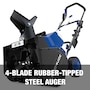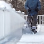 This snow blower from Snow Joe is ideal for small to large decks and driveways, or anywhere power is at a premium. Its four-blade rubber-tipped steel auger can clear a path 18" wide by 10" deep in a single pass and its 1200-watt brushless motor can clear up to 10 tons of snow per charge! An adjustable crank rotates the chute up to 180 degrees to throw snow up to 20 feet away in any direction, and the two-watt LED headlight can light up the night for safer clearing once the sun's gone down.